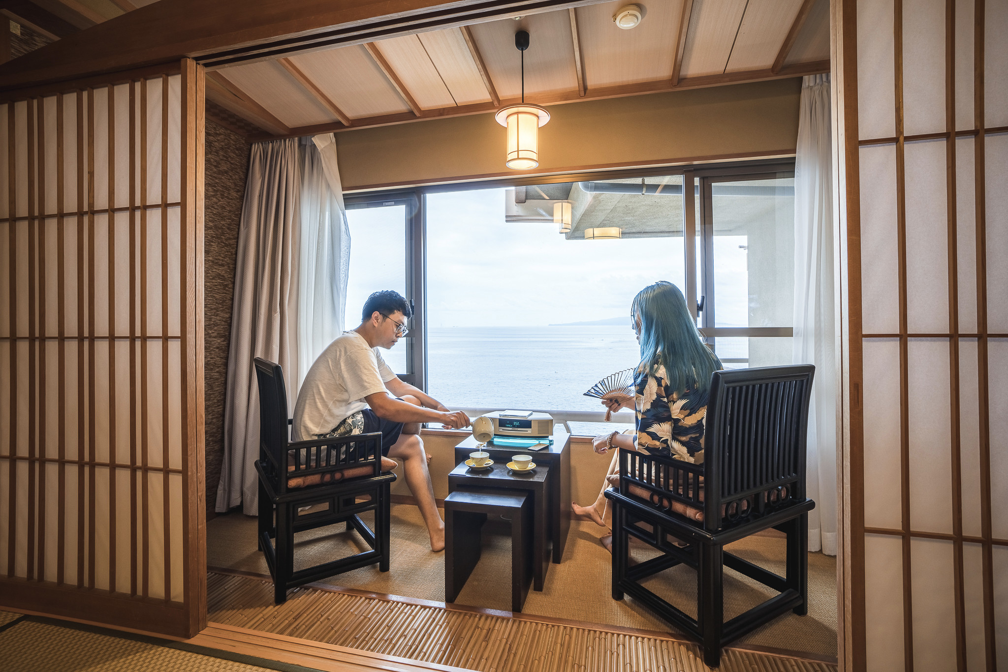 ▲welcome drink是日本特色的和果子与抹茶,办好入住手续,一对一服务的管家便会带客人下楼去到客房。