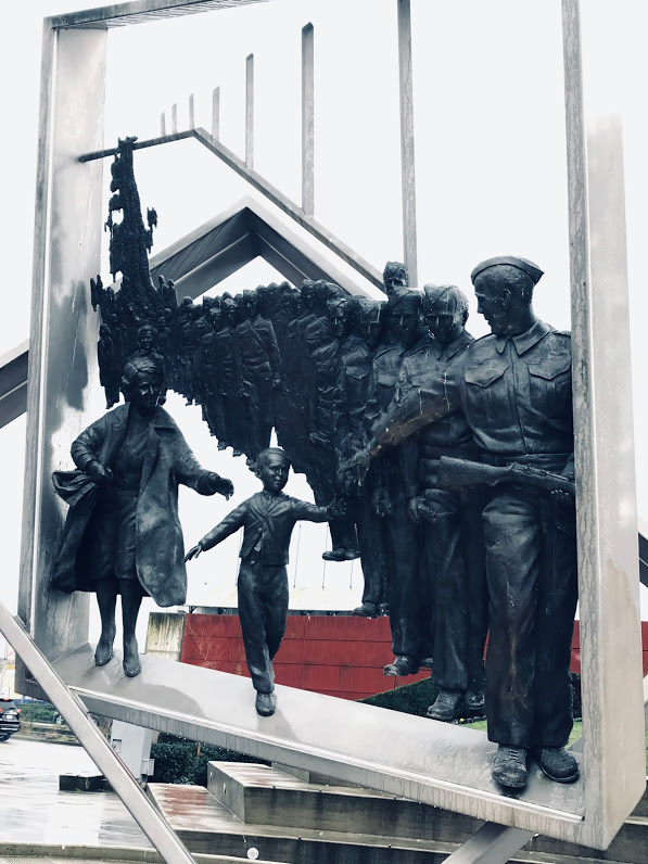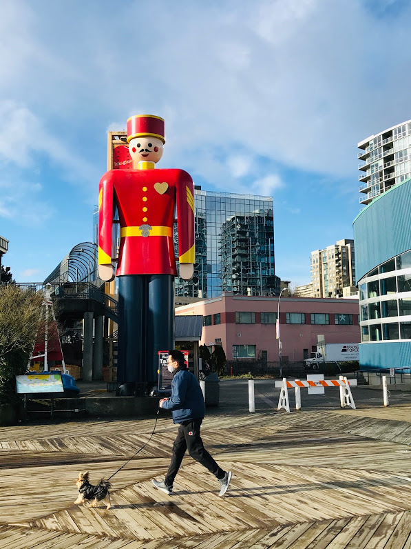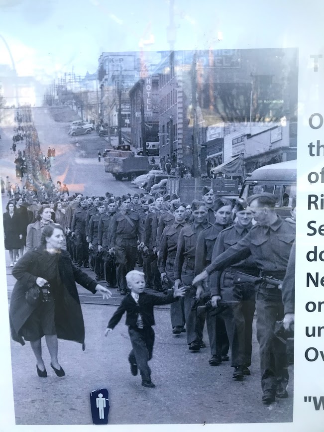 还记得在温哥华的贝蒂街军营遗址,见到过这张照片,一位少年追着从二战战场凯旋而归的加拿大士兵,这张经典照片被做成雕塑,竖立在新威斯敏斯特市的菲沙河河畔。