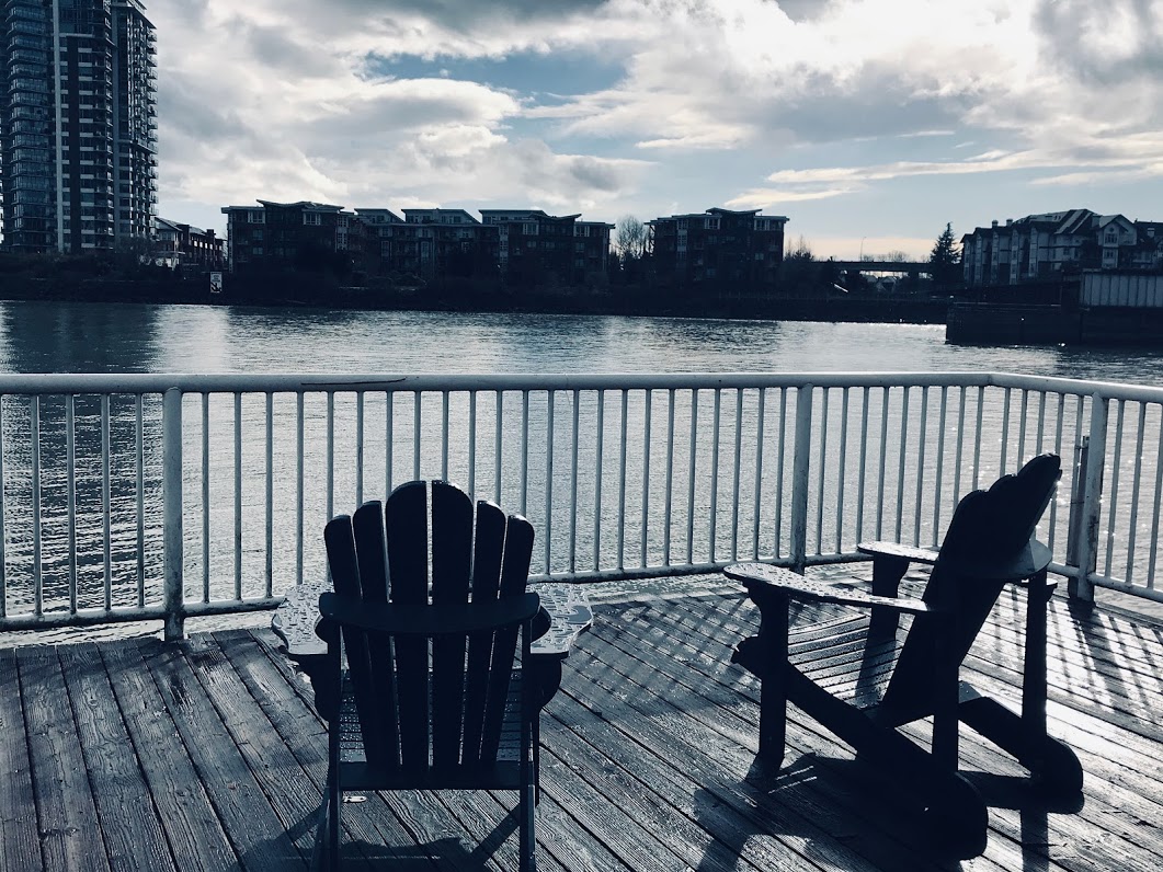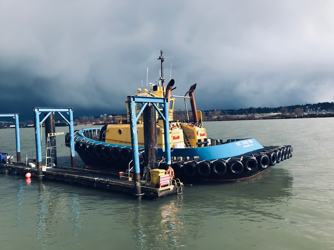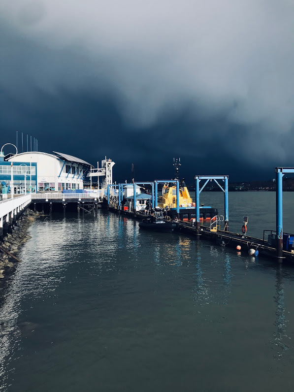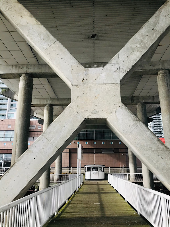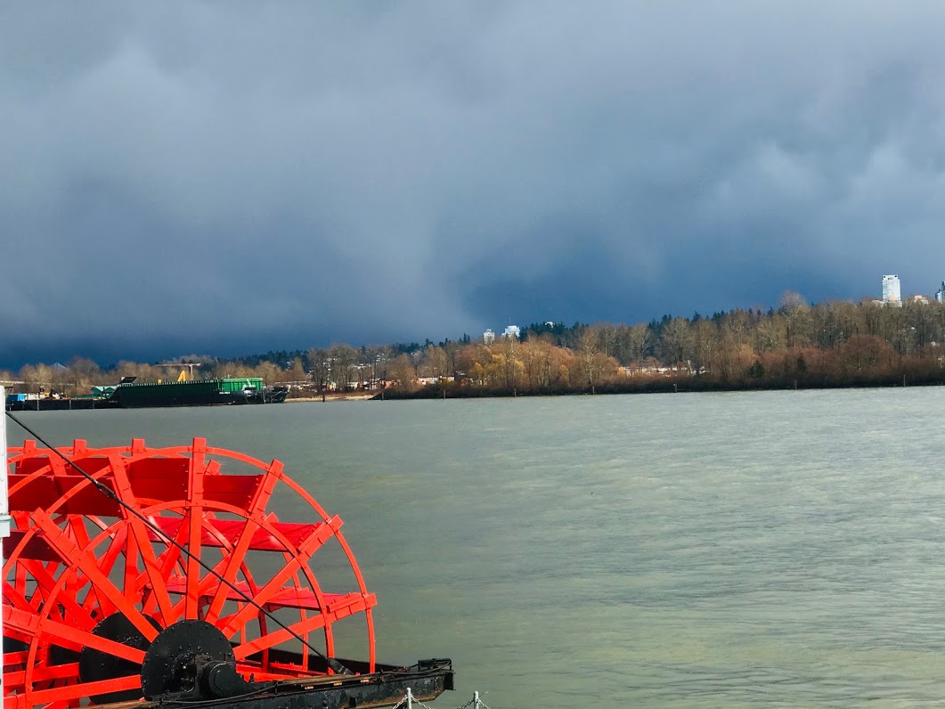 在码头上可以清晰的看到Pattullo Bridge(帕图洛桥),这是一座正在建设中的新桥,预计2023年通车,照片上后面的那座拱桥是老帕图洛桥,新桥建成后可能会被拆除。