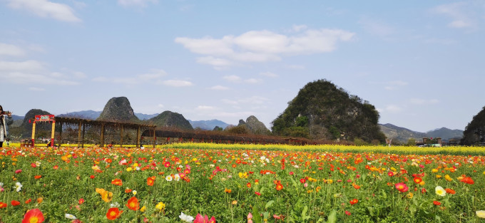 花海:我是三月初去的,这时油菜花、虞美人、格桑花都开了,穿着汉服去拍照你就是最美的小仙女.免费的哦!