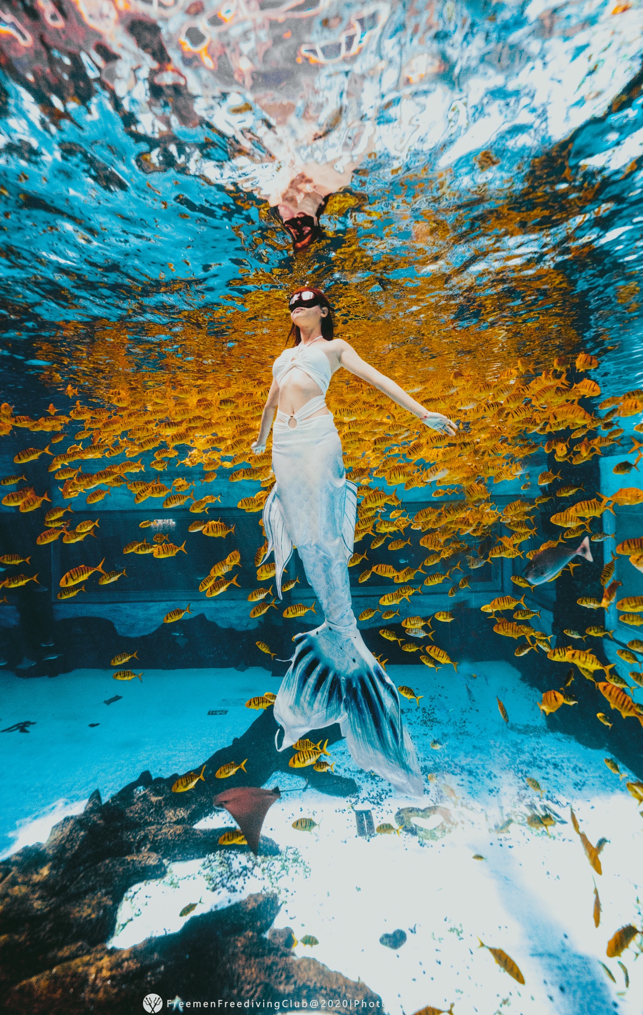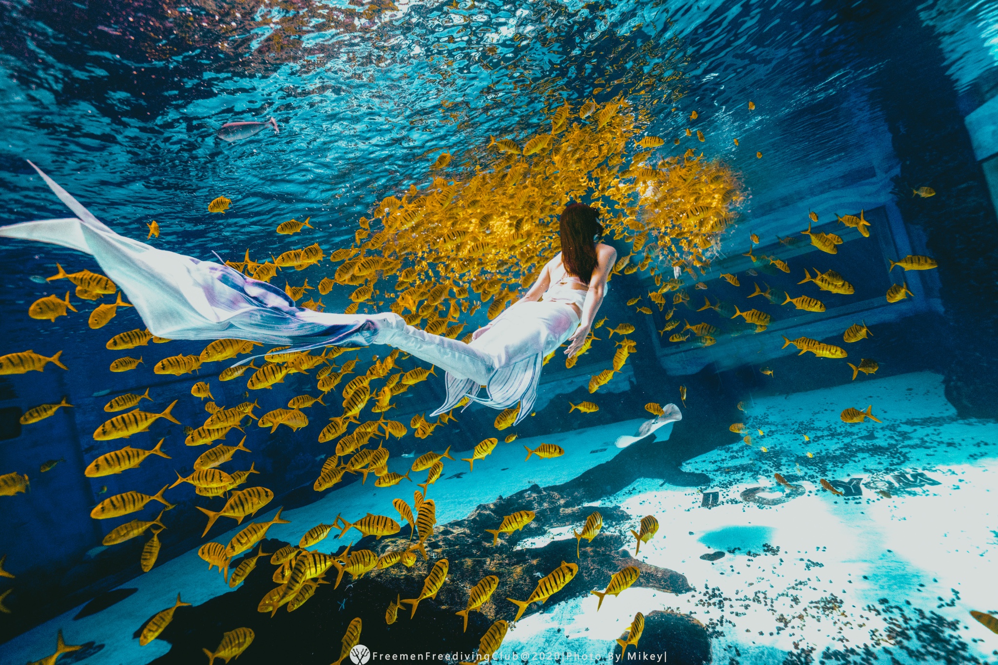 首先明确下,这两个是有区别的哦,如果是单纯为了拍照,美人鱼会更好看也更梦幻,但穿脚蹼在水下拍照也有不同的美感,因为我水性尚可,臀踢动作也做的还OK所以教练特意借了美人鱼尾巴,最终大家可以根据自己的喜好来选择~