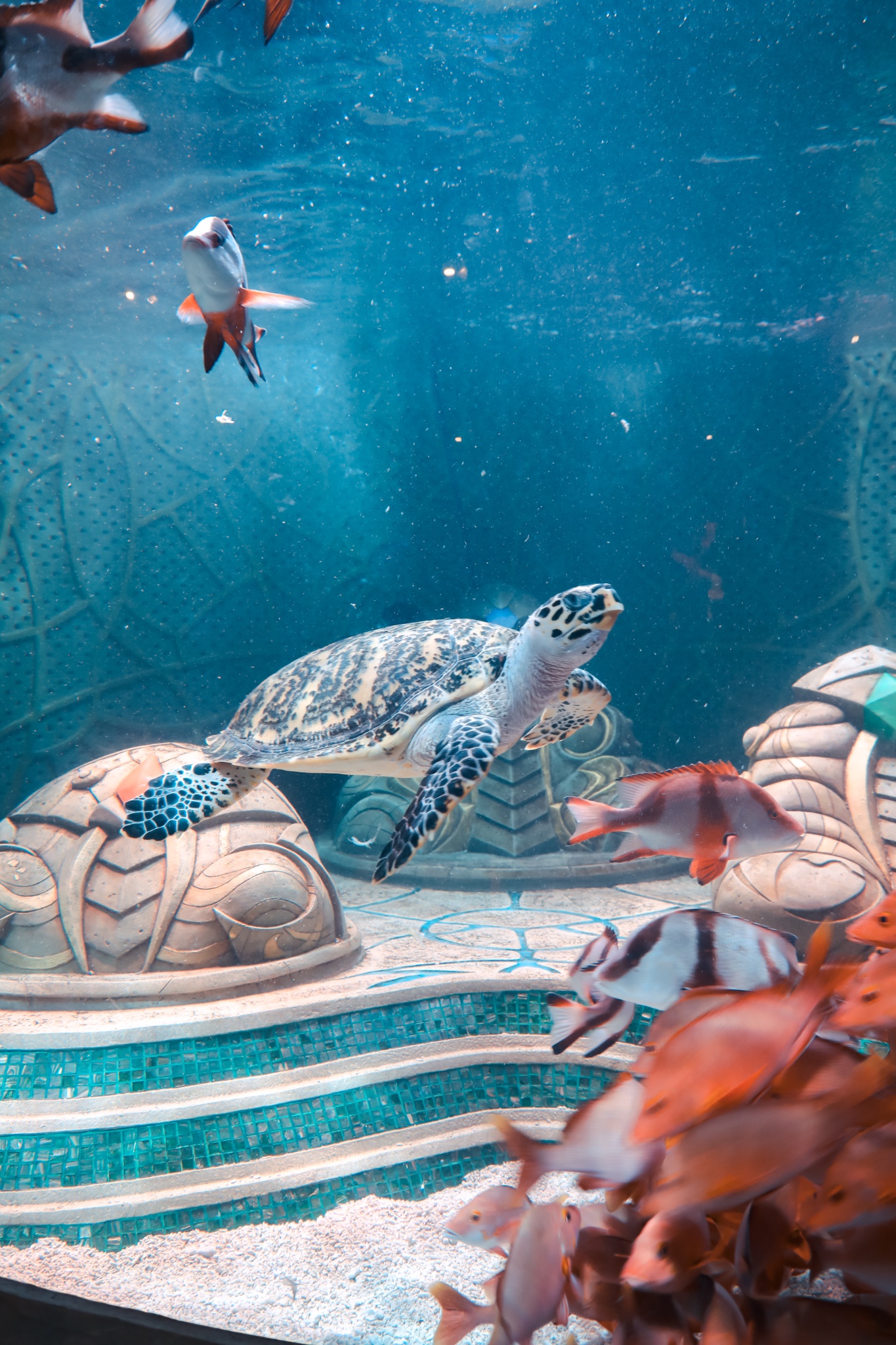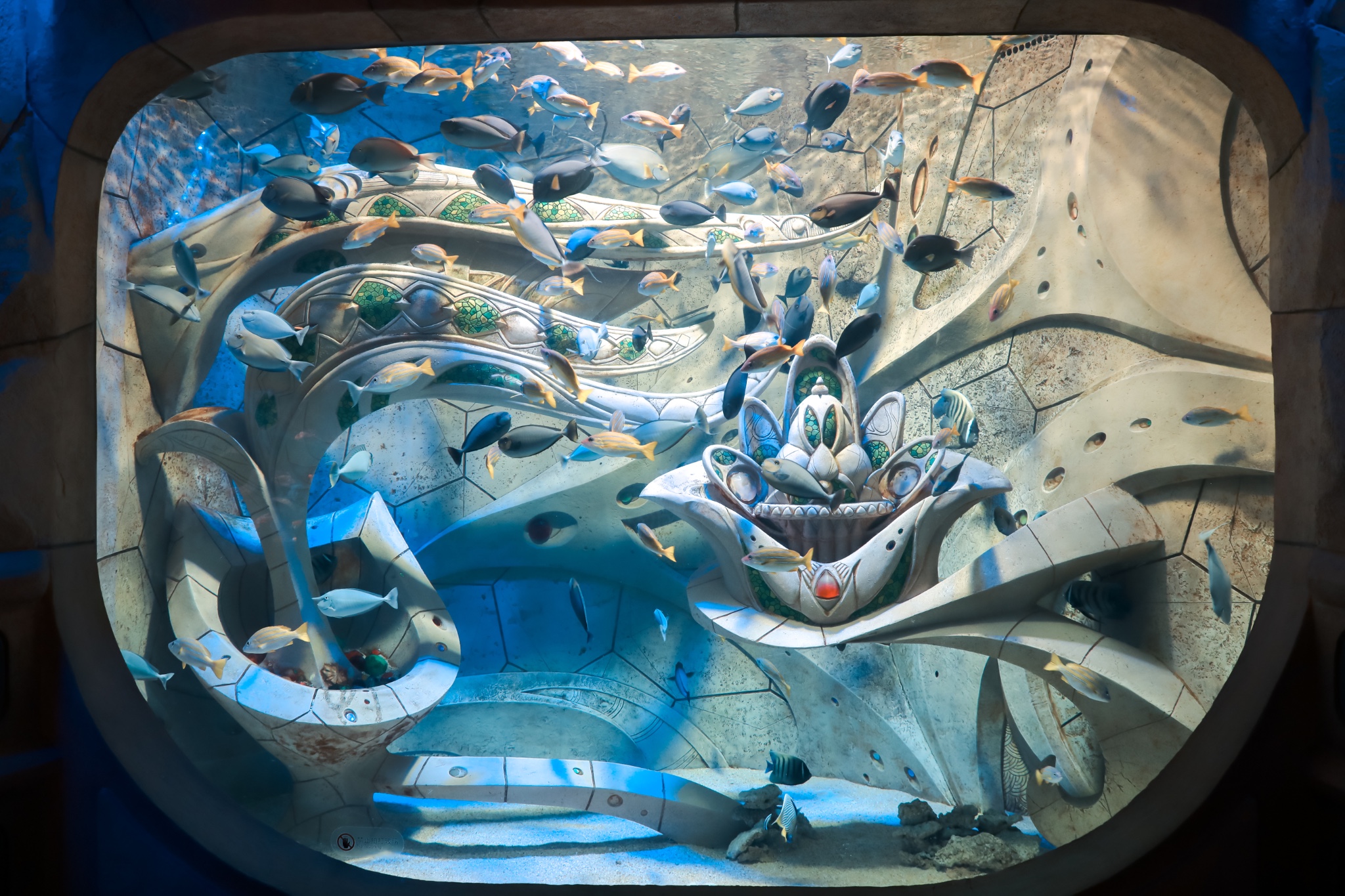 特色:亚特兰蒂斯造景、喷泉水柱、鱼类丰富