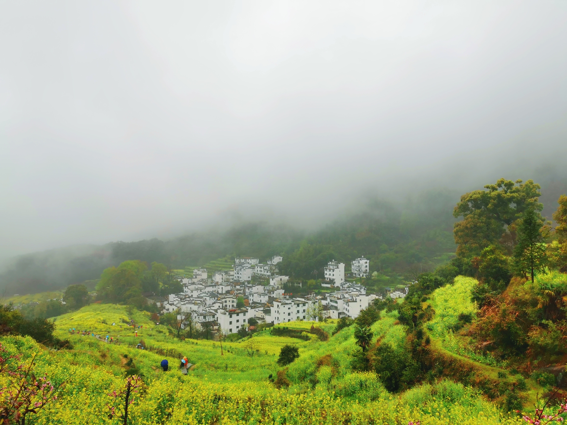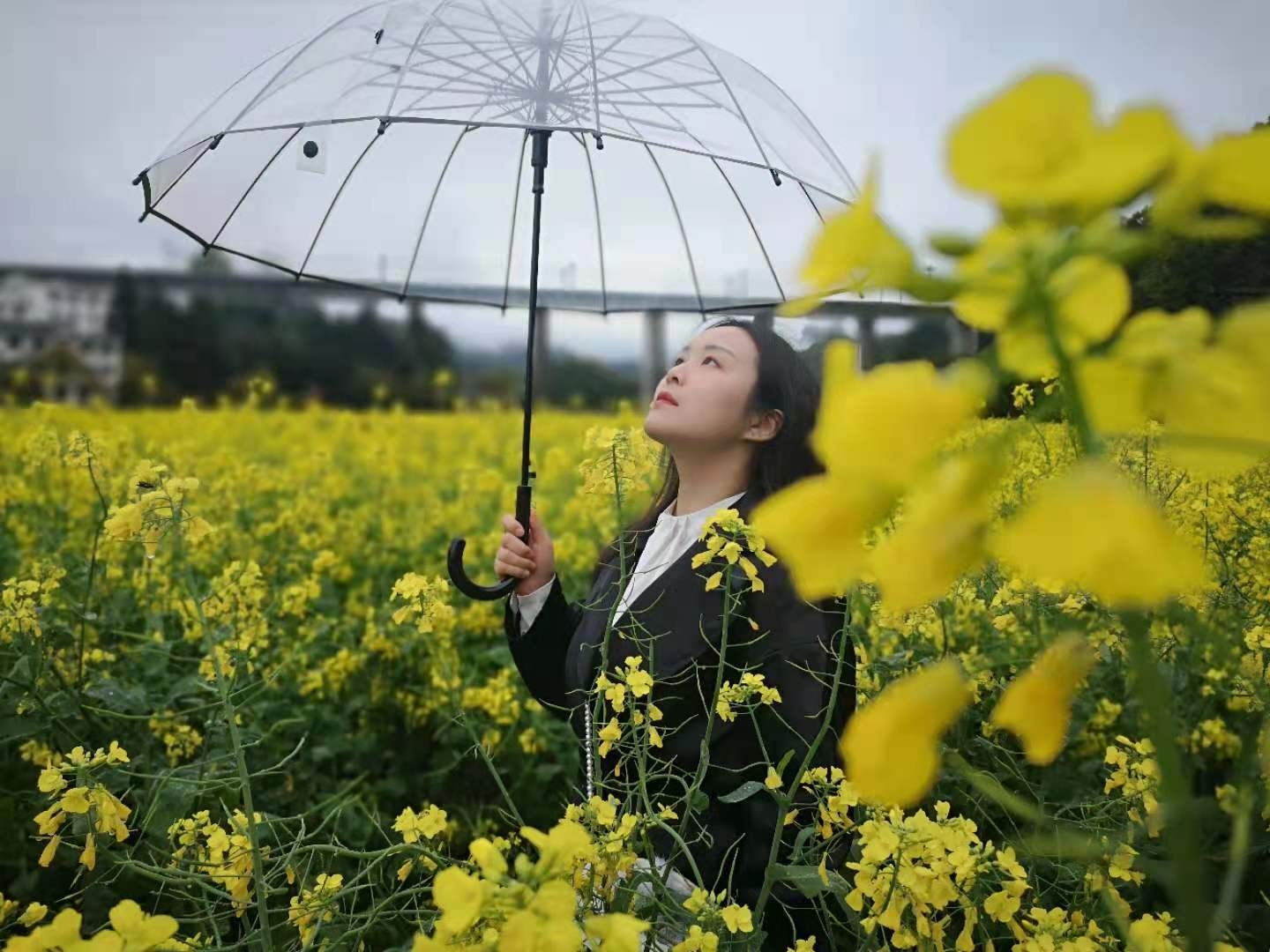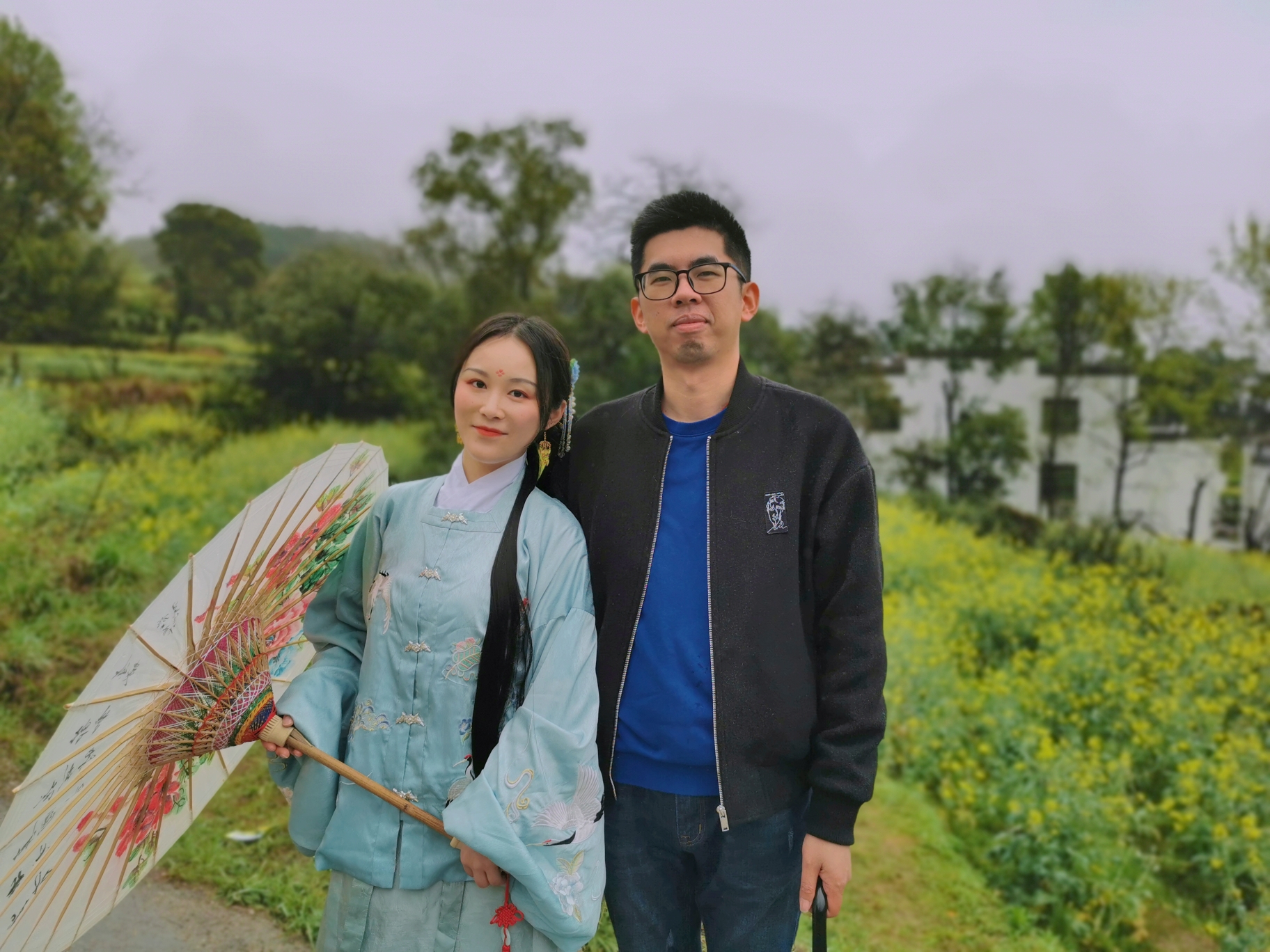 9:00前往江岭游玩,开车到江岭入口,有个停车场,停车后转乘大巴至江岭1号观景台,观景台有1-4号4个观景台,但由于下雨,油菜花大部分都谢了,所以我们在1号观景台稍作停留观赏之后便当机立断决定回去,从1号观景台不行前往2号观景台搭乘大巴,路程约半小时,中间还遇到一位同样喜爱汉文化的报社工作人员,热心的为我和大人合影留念~