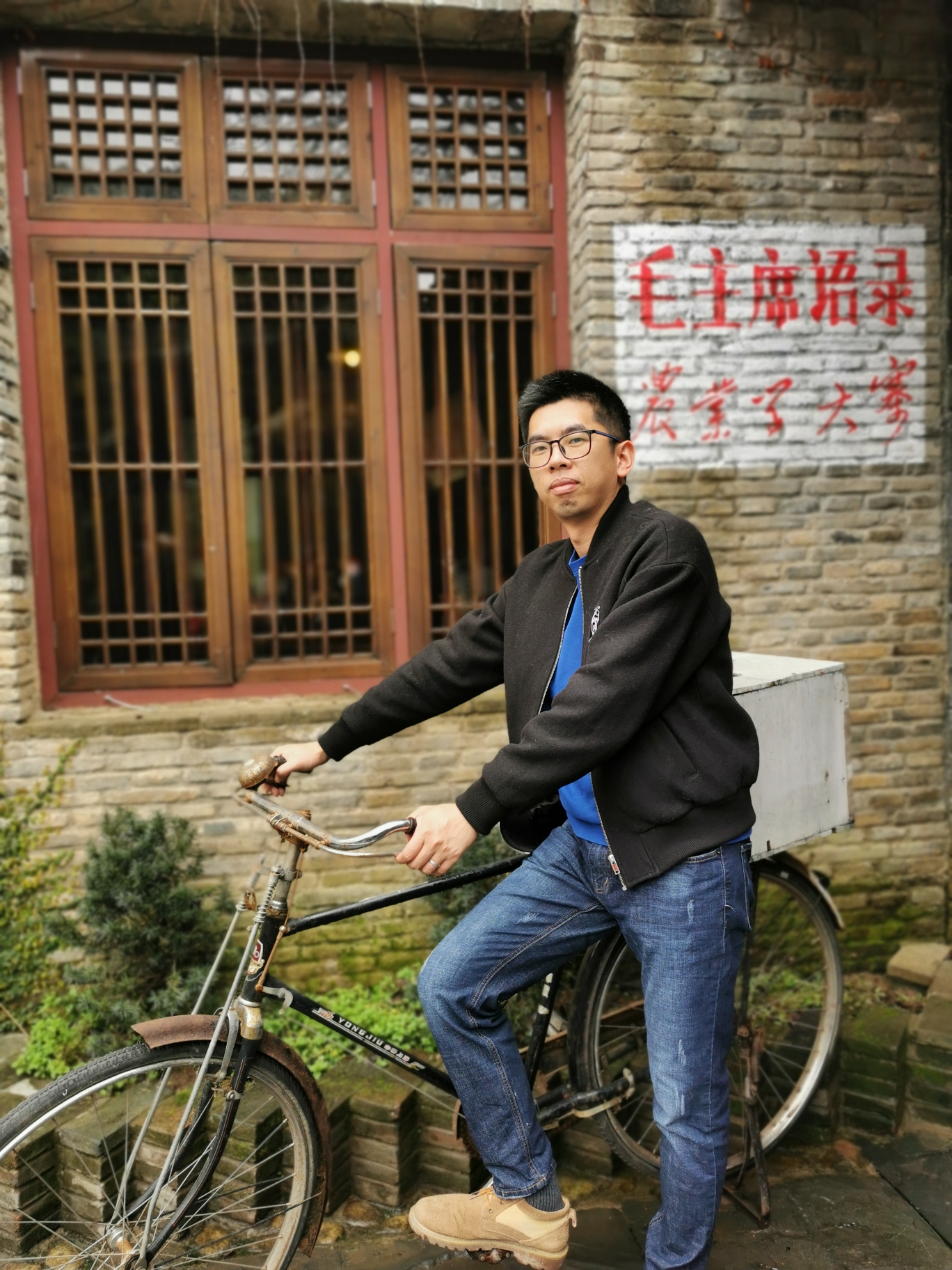 14:00抵达江湾,江湾村落比李坑稍大,村中还有个小学,大致景色都类似,不过有个人民公社食堂还是比较有意思的,献上大人在食堂的美照一张~