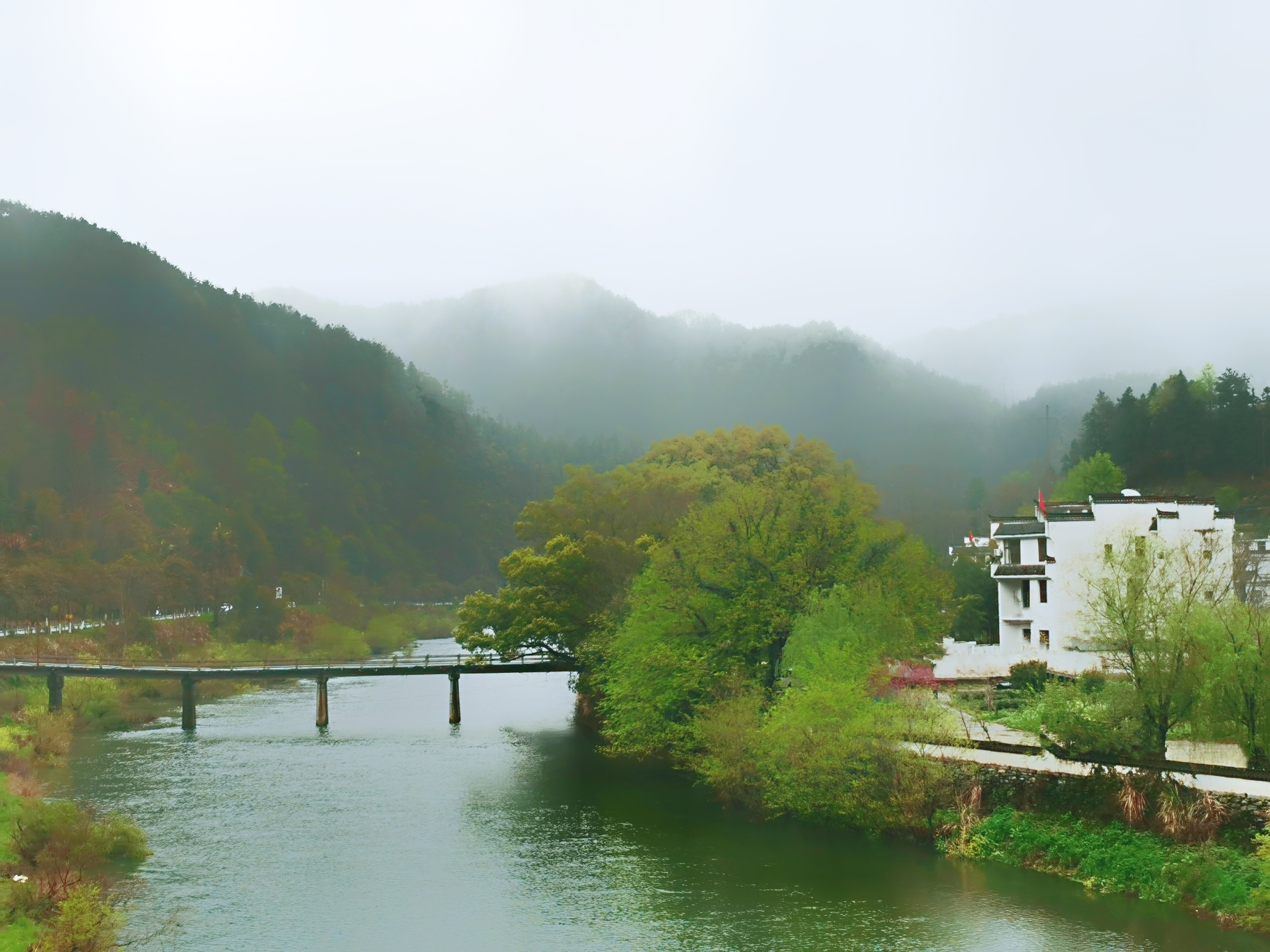 13:00出发准备前往彩虹桥等北线游玩,途中路过月亮湾,烟雨朦胧中的月亮湾真是美的遗世独立,拍照留念~