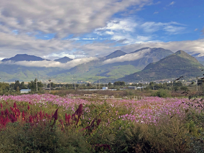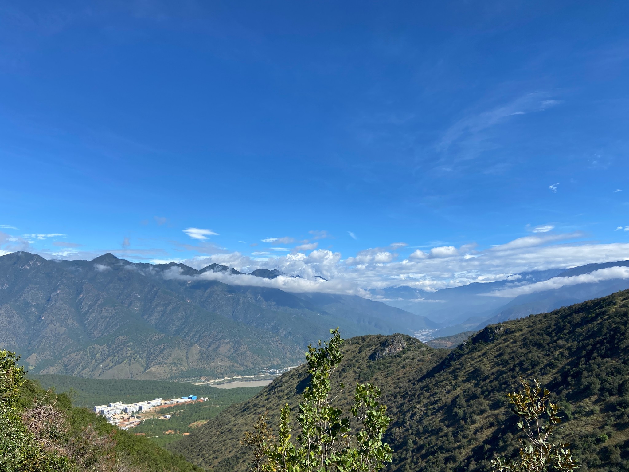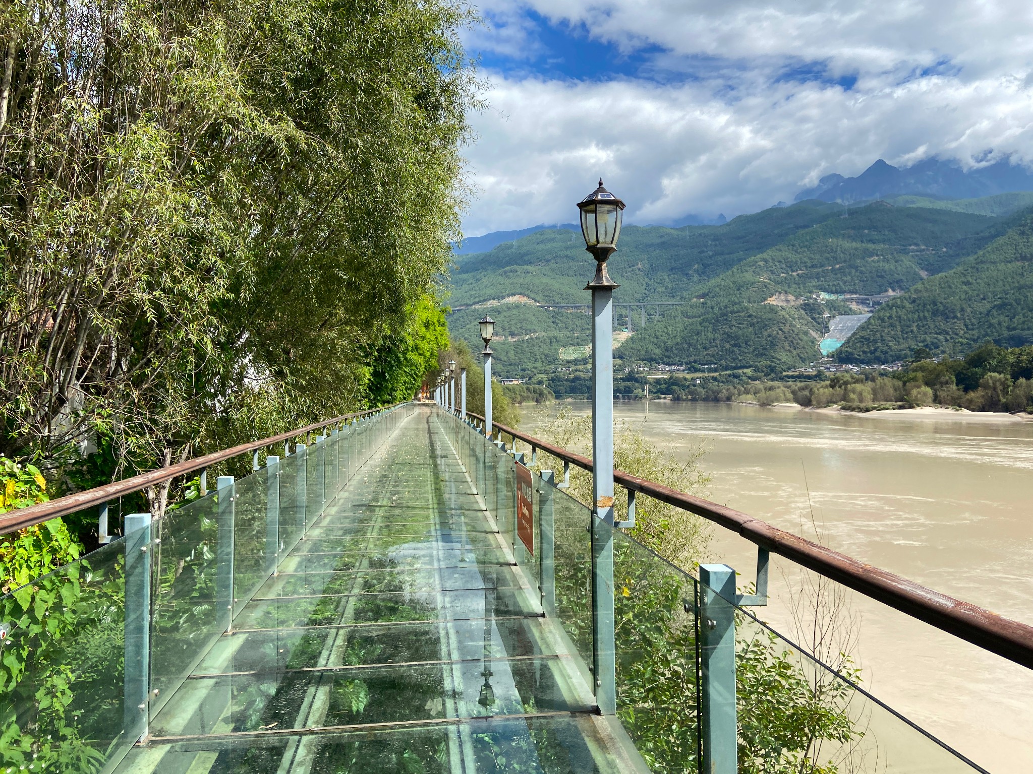 最后也可以看到金沙江了,感觉好像也没什么特别壮观的,中间在路过了一段没修完的栈道,其中玻璃的部分虽然不高,但骑上去还挺吓人的…路过一个水果摊的时候买了大桃子,但味道属实一般…