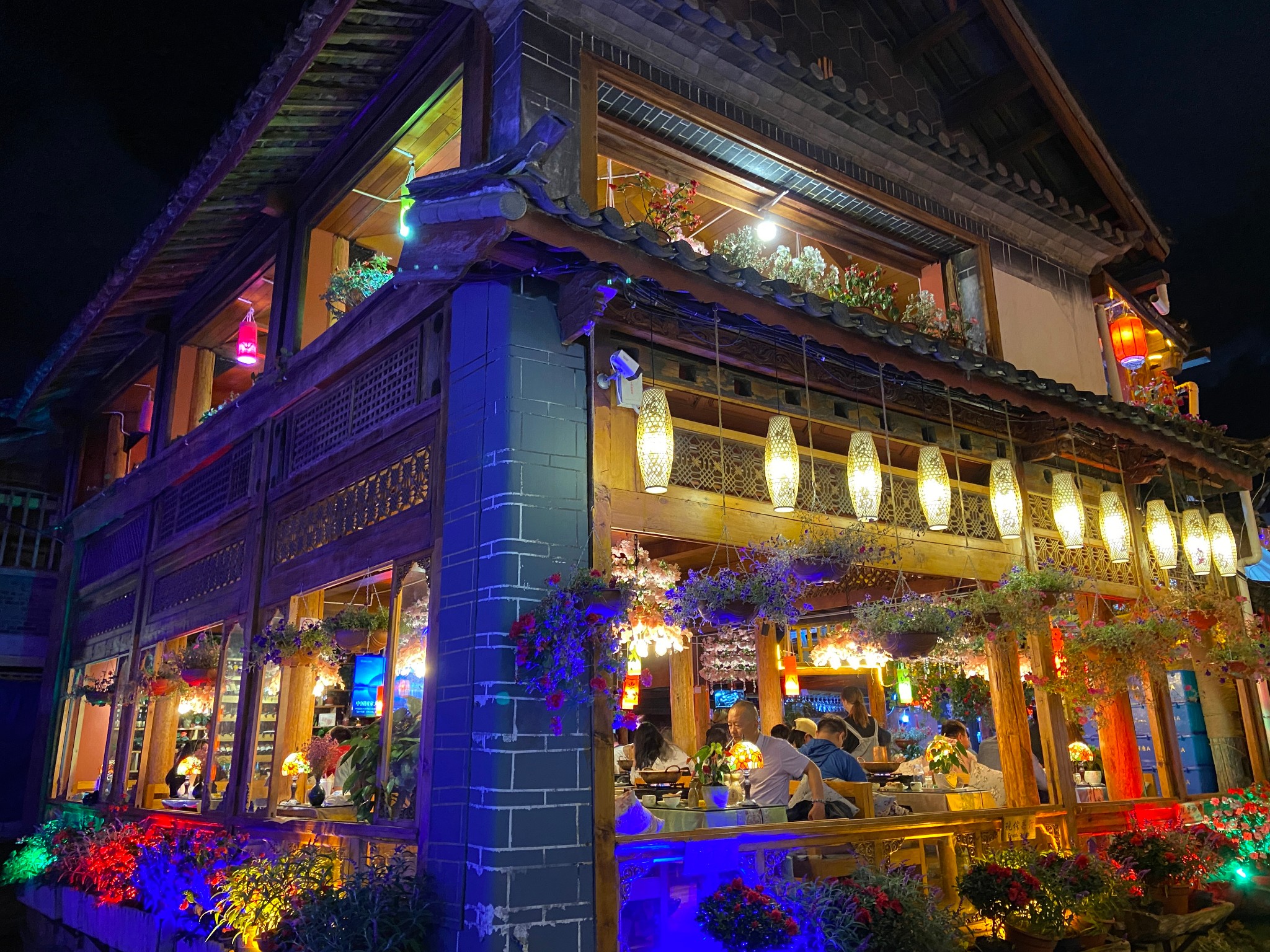 古城里面还是很漂亮的,各种鲜花、小河配上设计好的灯光还是很美的,只是人太多,太闹了…里面吃饭的要么排队排的特别多,要么冷清的没什么人…里面大部分都是年轻人,放个河灯、去个酒吧、学学手鼓…各种花样玩,比如酒吧里几倍鸡尾酒还搞个拍卖,然后还卖到了1000元…古城北边有“大冰的酒吧”,可能因为出名的原因吧,竟然外面挡的严严实实,不进去你根本看不到里面的样子,而且里面人居多,外面还有不少等位的…
