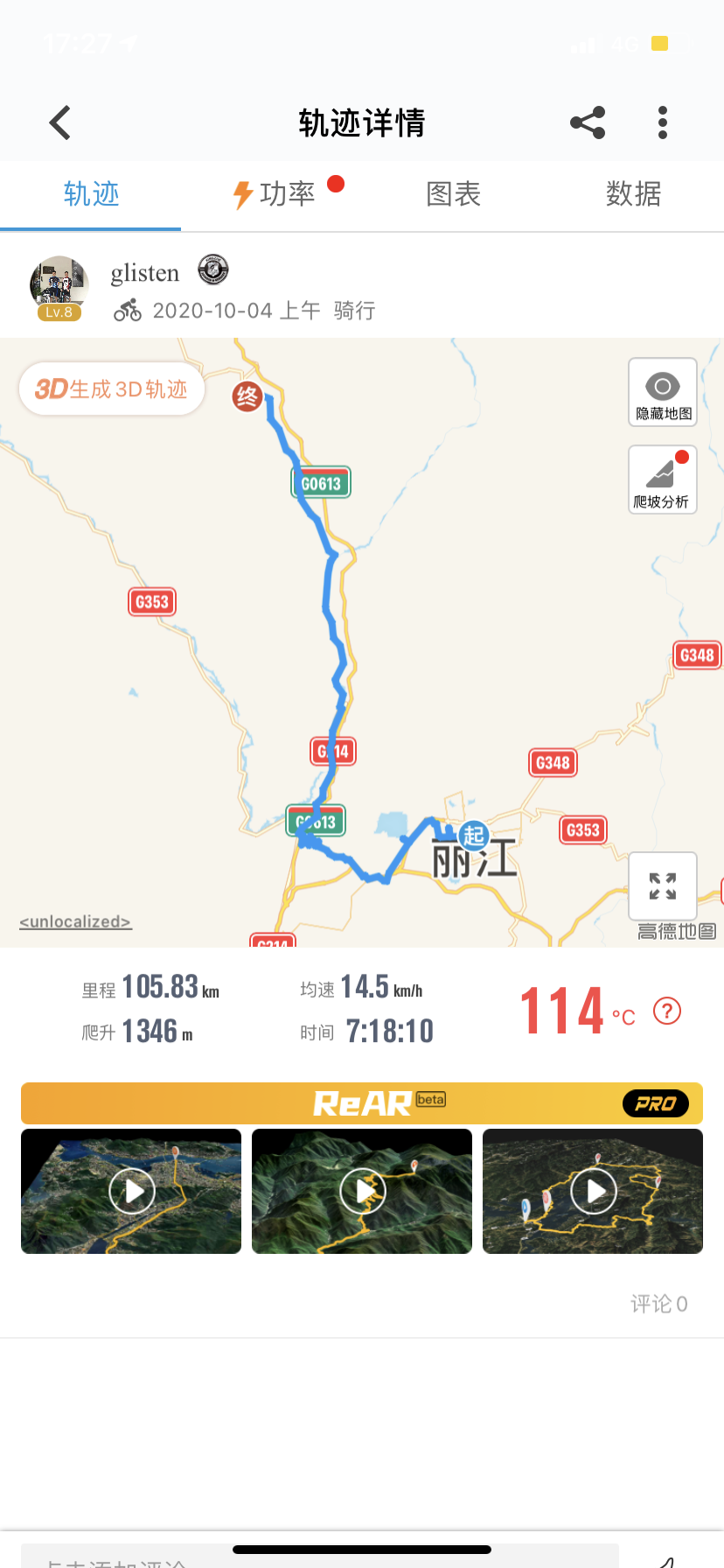 出了丽江基本就是小的爬坡,难度不大,两边景色还不错,只是车比较多,而且单向都一车道,出来没多久就是拉市海,没进去,感觉可能一般吧…在国道353上爬坡爬的还可以,到后面提示连续8公里下坡的时候基本就是结束了,要进入国道214了。