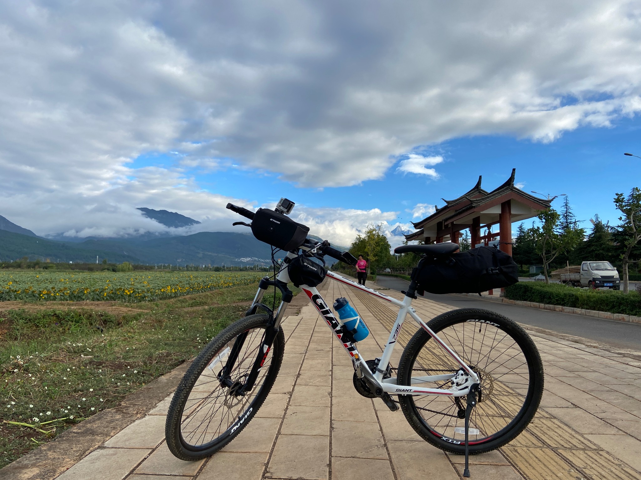 丽江10月的气温非常舒适,只是在下雨…登机前临时约了下顺风车,没想到落地后真的有人接单了…还是比包车省了很多钱的…大概40分钟左右到达了车店,租了一个美利达DUKE和捷安特ATX,每天50元。