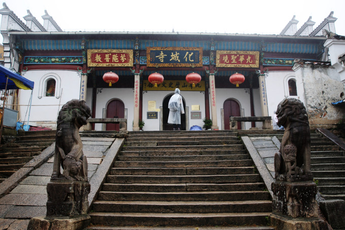 化城寺,为九华山开山祖寺,历史最悠久又是地藏菩萨道场,是九华山寺院的“总丛林”。东晋隆安五年(401 年),僧人杯渡曾在此筑室为庵。唐至德年间(756-758 年)改建,定名为化城寺。“化城”源出于《法华经》中的佛教故事。