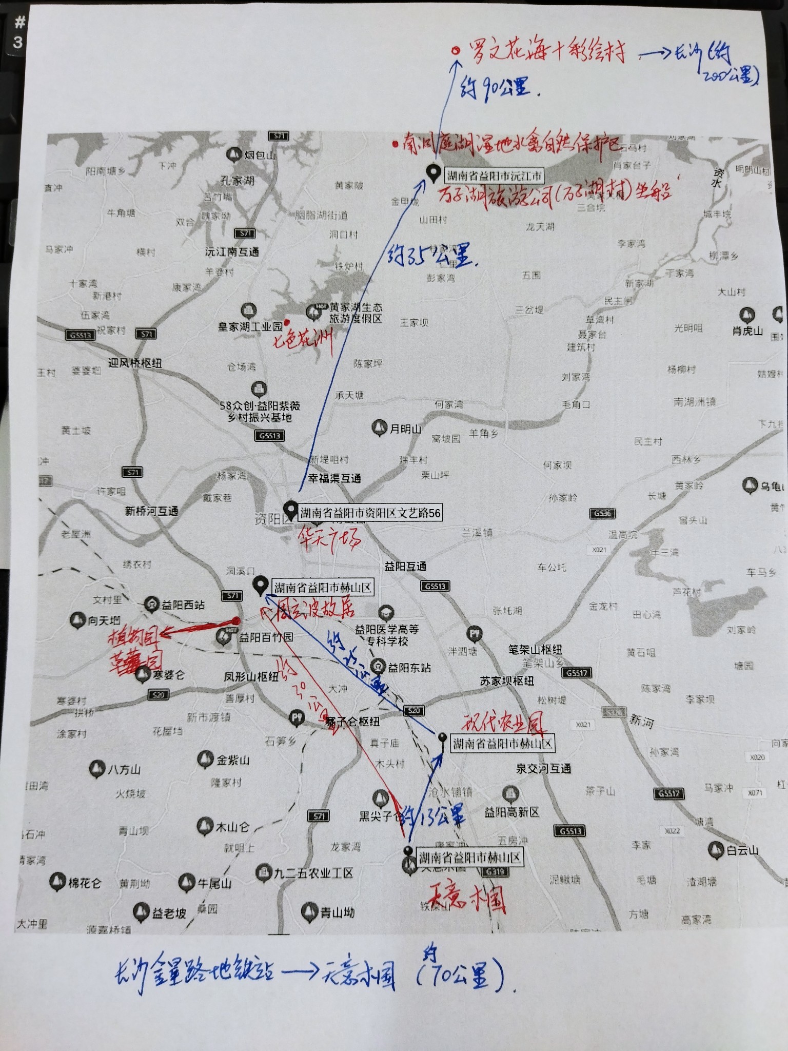 起了个早,收拾行李。早早地吃完了中饭,到金星路地铁站接了C兄父子,直接奔赴南县,和E兄家庭在罗文花海汇合。这里说明一下,之所以先去最远的点,主要是考虑到旅程的第一天,大家的精力都比较充沛,如果是到了第三天,估计大家都有点累了,再开200公里回长沙就有点为难了。所以,先难后易。事实证明,这个选择是靠谱的