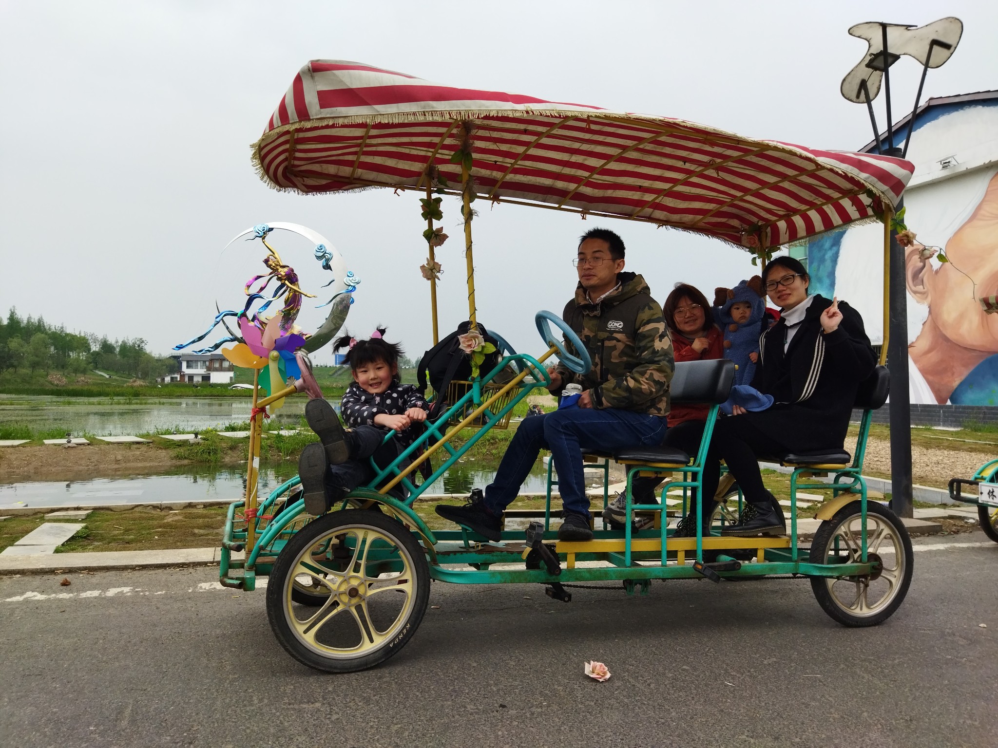 停好车,租了个大脚踏车,8个座,刚好8个人,店家也不收押金,30元想骑多久都行。