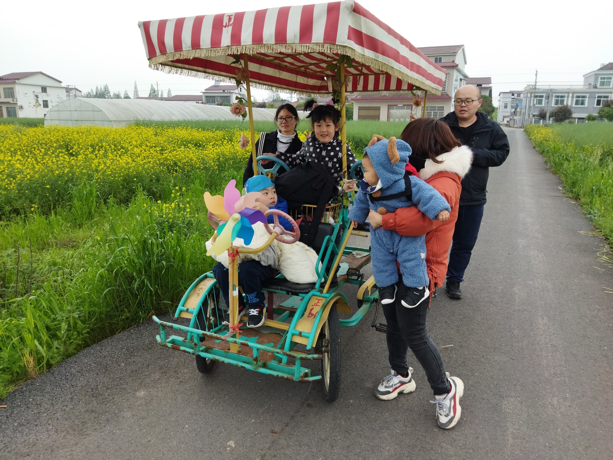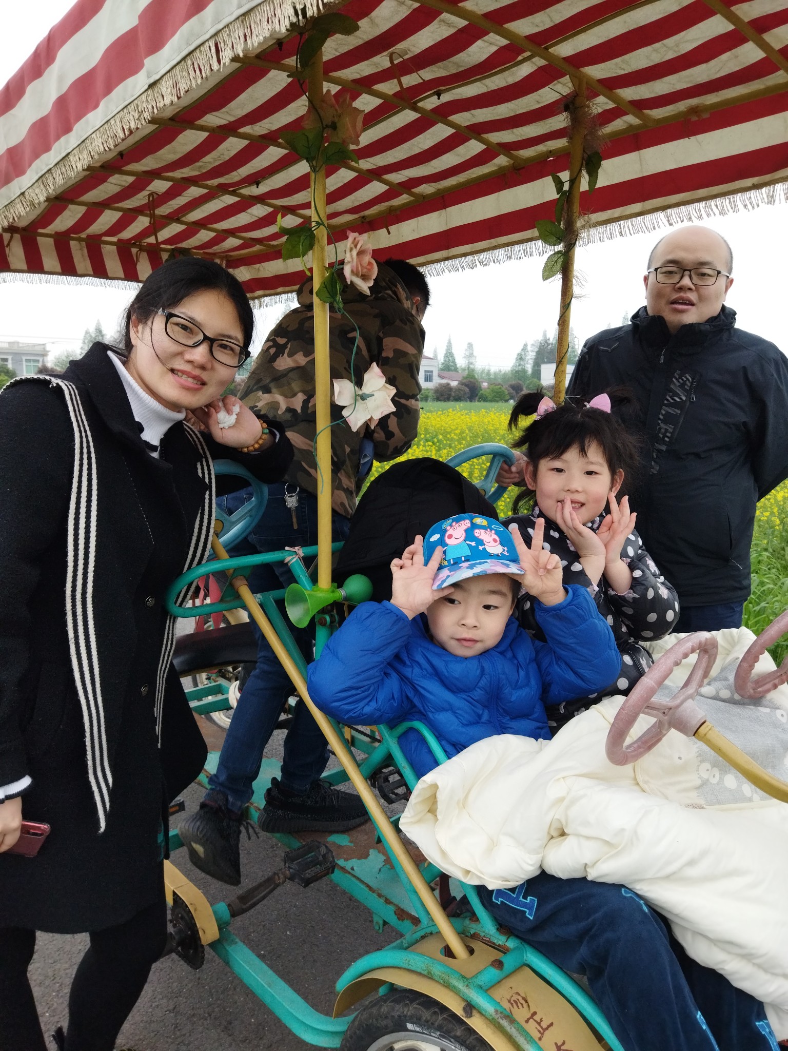 踩着小单车呀,转了一个弯呀,又转一个弯呀,左拐拐,右拐拐,看到了一小片还开着的油菜花田。
