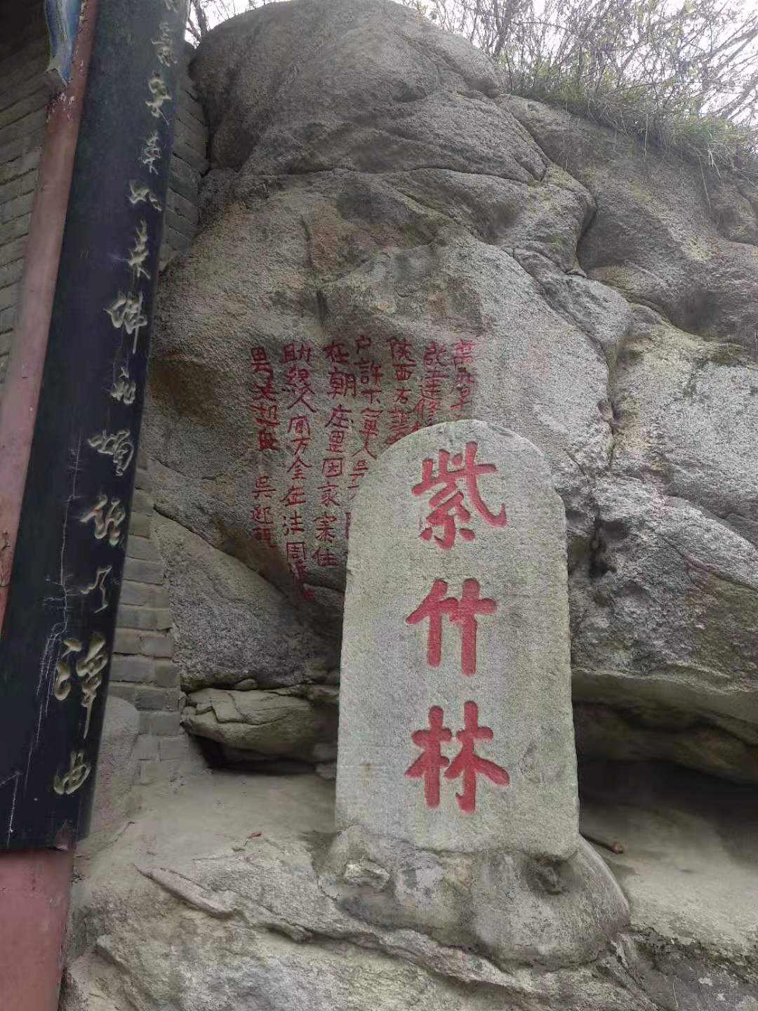 “家家弥陀佛,户户观世音”。人杰地灵---紫竹林,作为南五台佛教丛林中最早的寺院、终南山最悠久的古刹之一,位于海拔1500米处的岩壁间,此处环境优雅,“前有长安明灯照,后有松屏随便靠,左有甘泉清香美,右有石莲登远眺(即犀牛石)”。寺内供奉观音、文殊、普贤三位菩萨,圣宗、果初、常慧、常明等著名法师都曾住持该寺。南五台紫竹林作为观音菩萨出家成道的先天根本道场,观音文化的发祥地而名扬天下。寺名紫竹林是有渊源的,日本临济宗名僧慧萼曾多次入唐,他自南五台山请观音像归回,途径普陀山,为大风所阻,他祈请观音,得到不肯去日本,愿留中国的灵示,于是在普陀山潮音洞前紫竹林建“不肯去观音院”,是为道场开基,香火日盛。故之,著名佛山佛寺,多以紫竹林命之,南五台紫竹林亦如此。如今,南五台紫竹林是中国佛教协会一处重要的活动场所,是中国著名的旅游胜地。