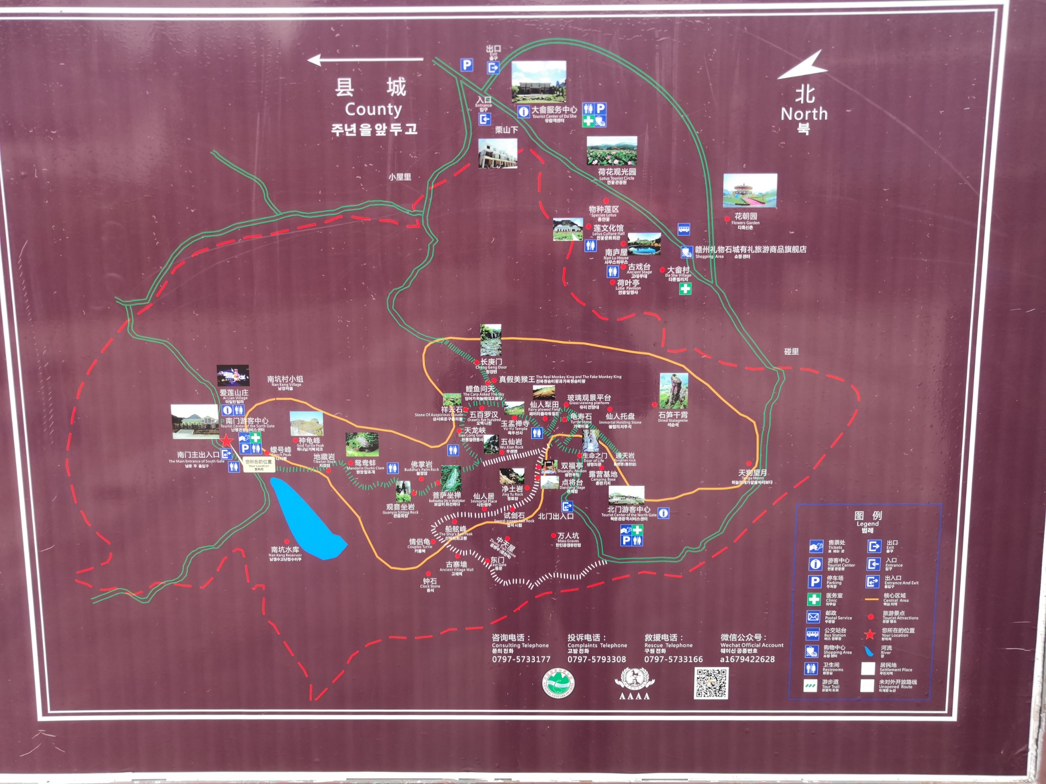 10:50来到南门停车场。景区有两个门:南门、北门。南门在山下,进入后是一直往上走;北门在山顶,可自驾到达或坐景交车。景区不大且不高,本身出来就是爬山的,我们选择从南门步行上。