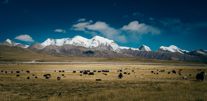 出机场没多久,草原,牦牛,雪山便出现在眼中,西藏壮丽的风景便已经为我们拉开了序幕。