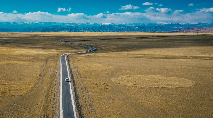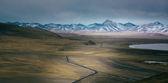 站在某处山坡,看着远方的公路沿着湖边伸延,犹如一条丝带围绕着纳木措。