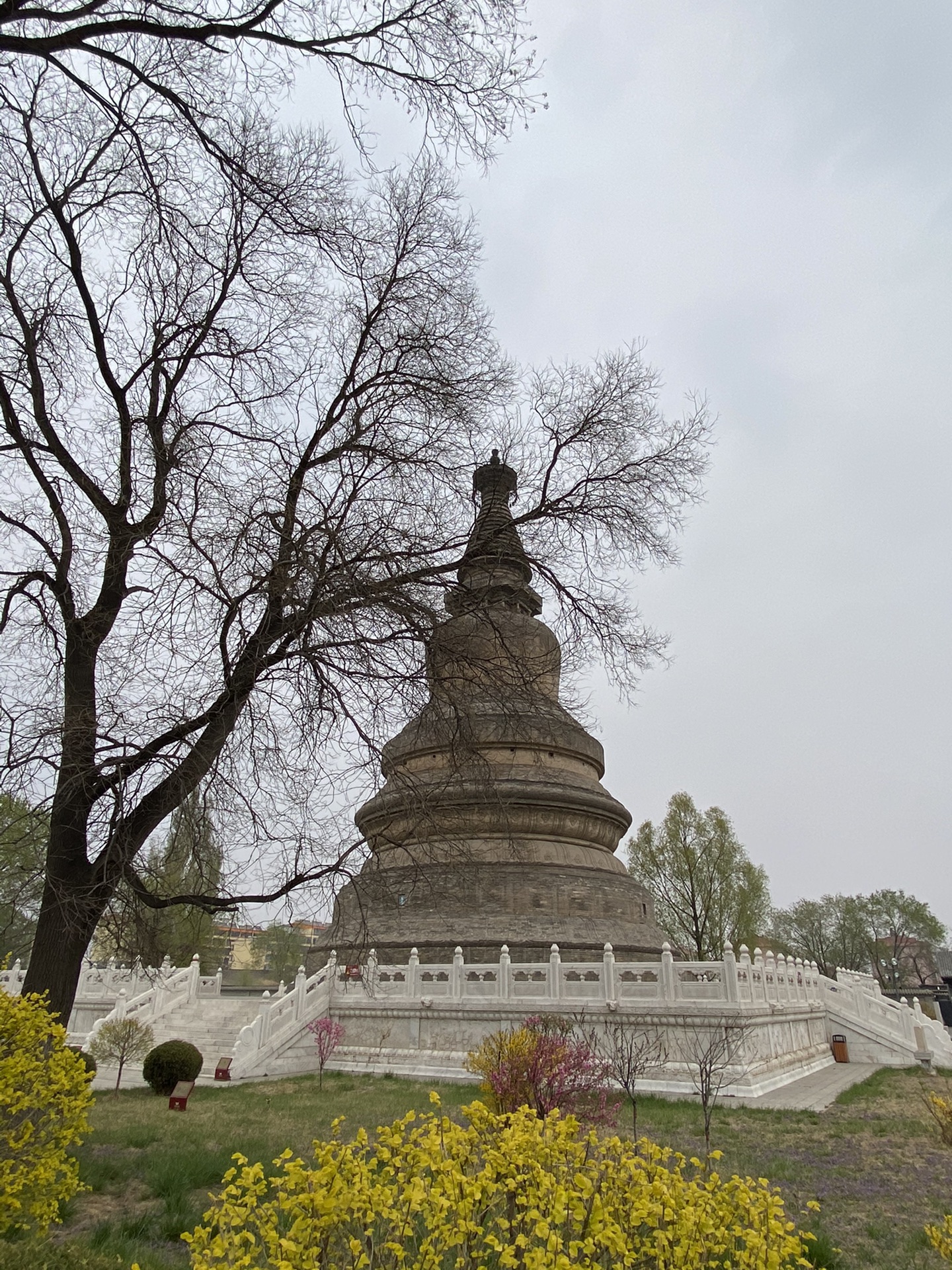 围着这座宝塔转了几圈,在树木的映衬下显得格外古朴秀丽,巍峨挺拔。