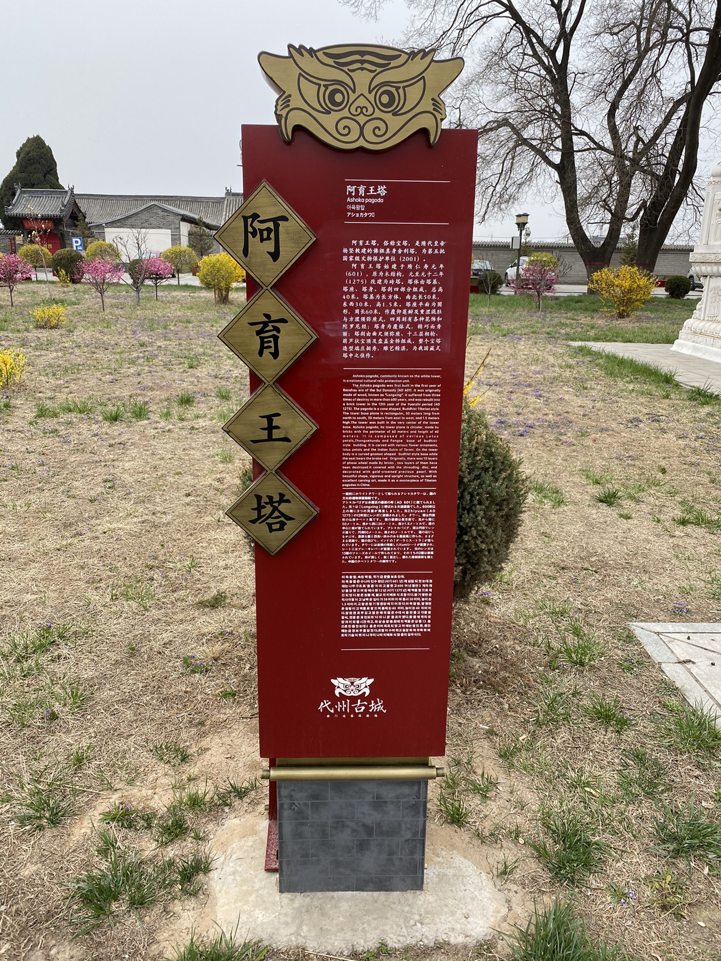 代县的阿育王塔就在边靖楼东边一公里的代县县政府大院内,塔下设有停车场,开车可以进去,步行也可以进去,县政府大门是开放的。2021年4月11日上午11时30分离开边靖楼前往阿育王塔参观。