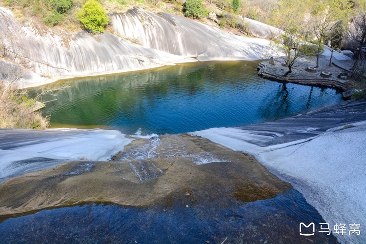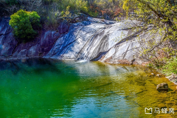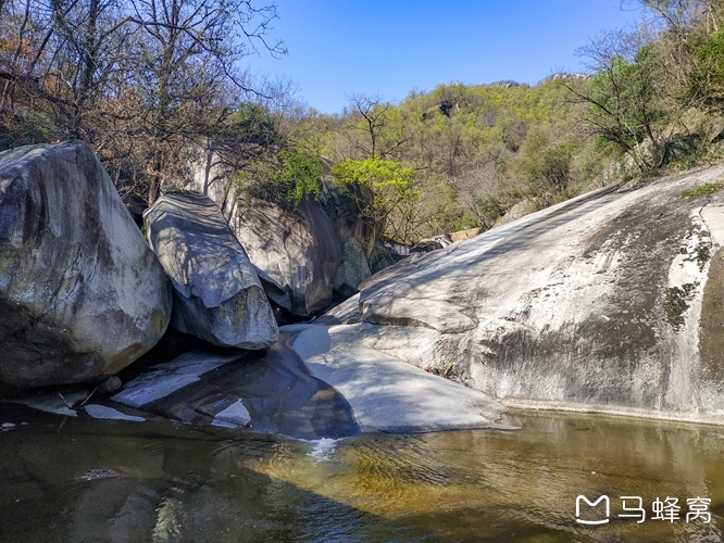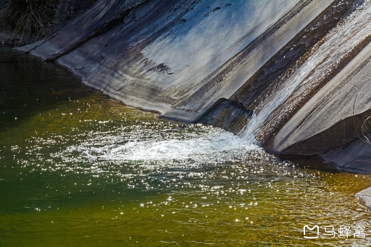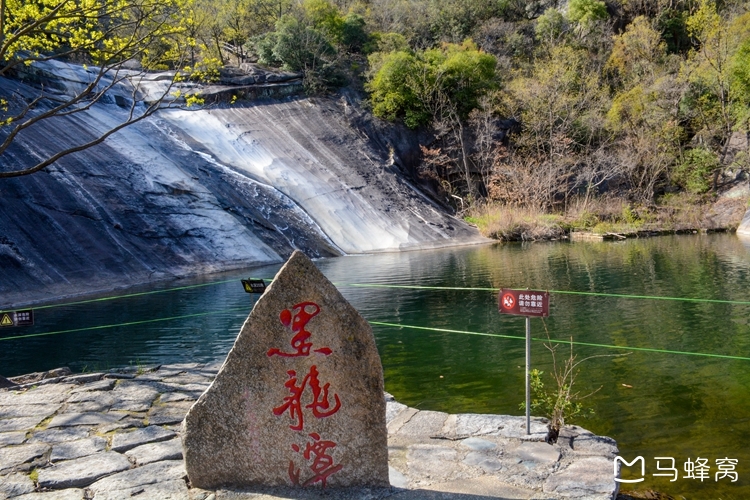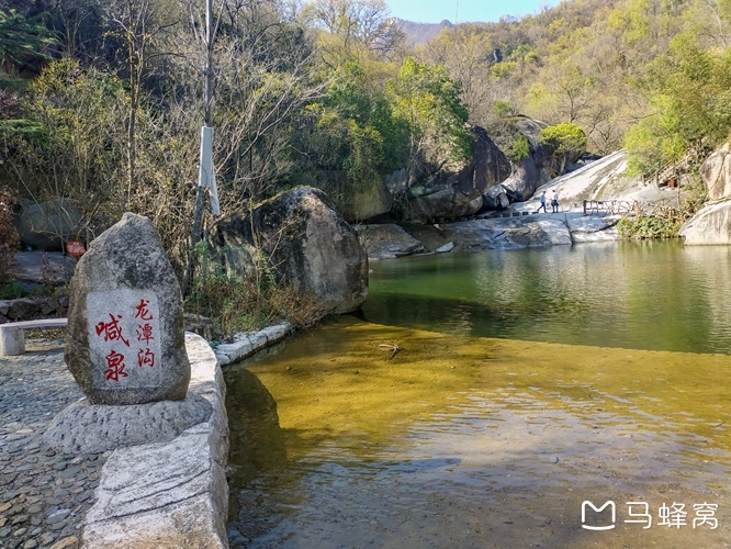 进入景区后,沿龙潭沟缓坡慢慢上行。两岸石壁陡峭,林木丛生,奇石满沟。山涧溪水从悬崖倾泻,急流如注,浪花飞舞,景色秀丽。