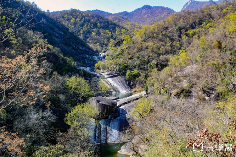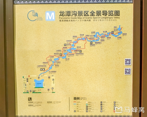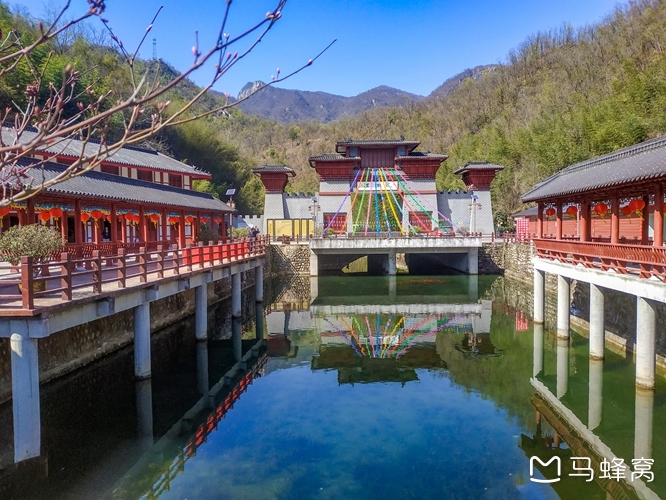 站在观景台,眼前由白龙、龙凤、青龙、黑龙四组潭瀑相连成串,组成的四连梯式瀑布,像一条蜿蜒盘踞的蛟龙,腾跃与青山翠谷之中,是中原大地罕见、绝妙的水蚀地貌景观。在观景台旁,还有一座新建的网红探险桥,悬挂于九龙圣母潭上方,探险桥全长118米,离地100多米。置身于探险桥上,向前可欣赏到秀美壮观的四连瀑布,向下可以俯瞰到龙潭沟的潭瀑相连,曲径通幽,可谓美不胜收!