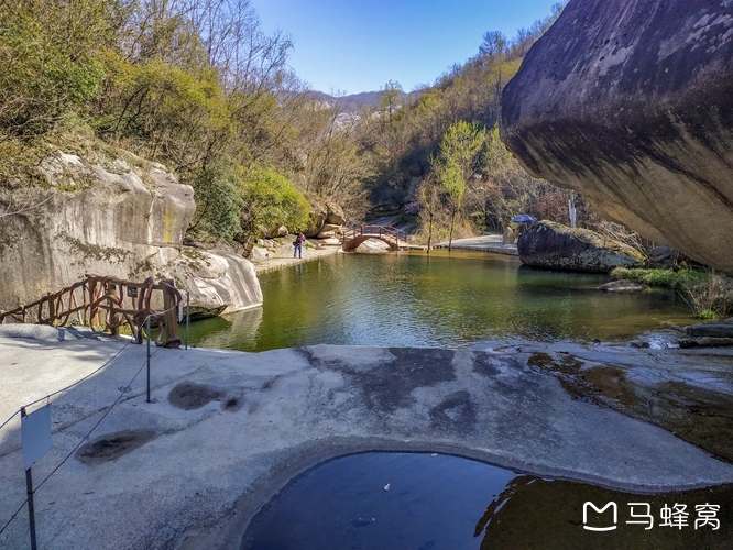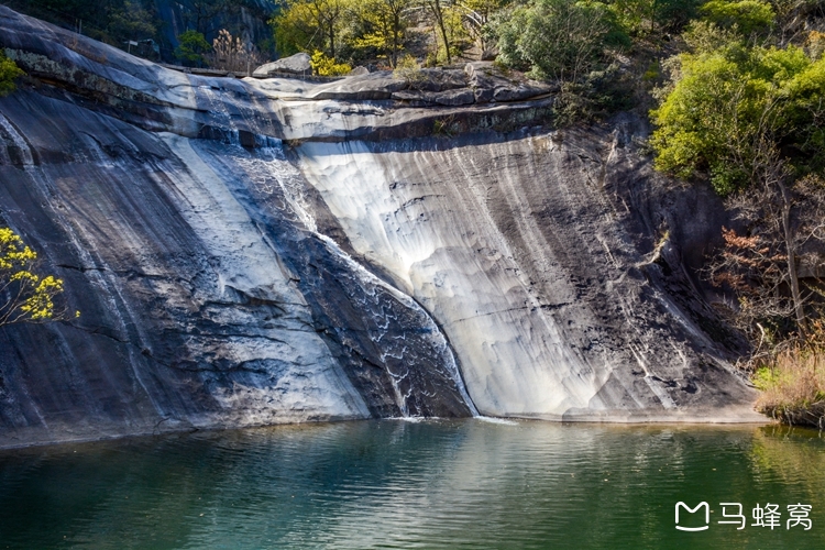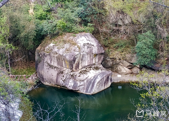 八戒石是三组原生矩形体石块,在距今 6500万年山体抬升时从山顶崩落,翻滚于溪旁,经过长年风化,冲蚀,成为惟妙惟肖的八戒头。就像八戒偷窥仙女在潭中洗浴般,这自然天成的神来之笔,给人世间留下许多神话传说。注:拍摄八戒石的最佳位置,是在潭的对面,下山的那条道上。