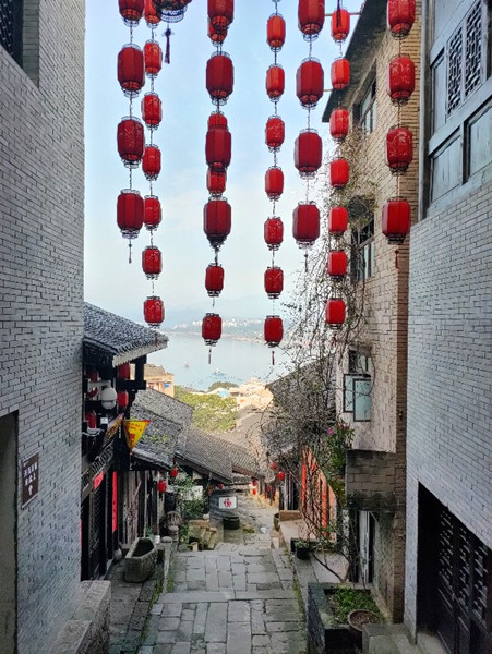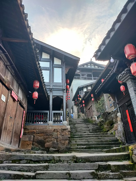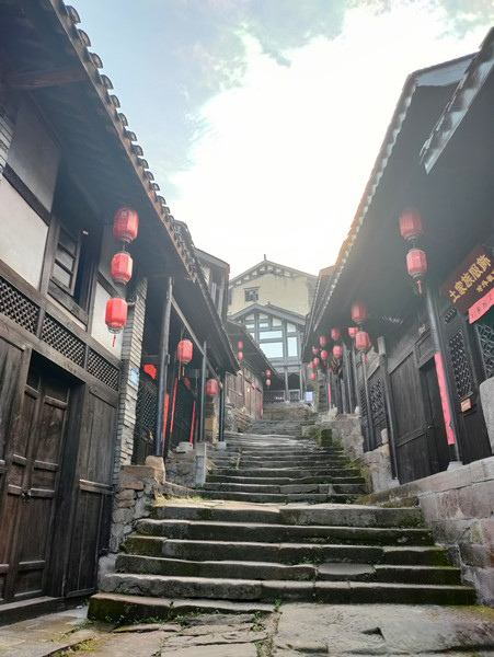 驻足古镇,游客可攀登有着“万里长江第一街”誉称的云梯天街,台阶共1314步,寓意“一生一世”