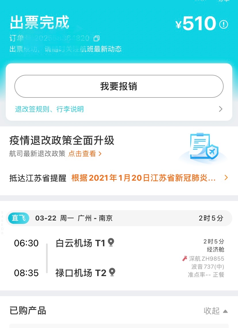 由于过年新冠疫情又有一点反复,导致新年假期都不敢外出,刚好何先生的年假3月份就要清零了,所以决定3月份出去一次,既可以消年假,也可以错峰出行,打开去XX旅行网看了一下机票,发现南京的机票超便宜的,而且时间段也不错,而且目前南京也是樱花盛开的季节,就决定去南京,因为南京几年前我已经去过,所以这次旅行也没有太多的计划, 来个随意一点的行程。
