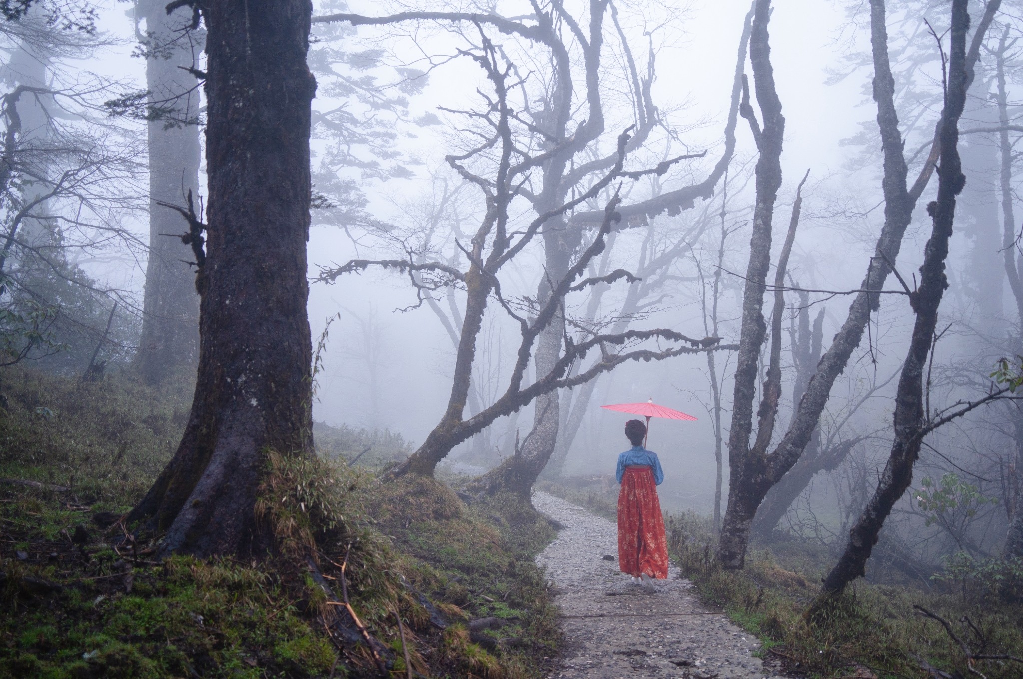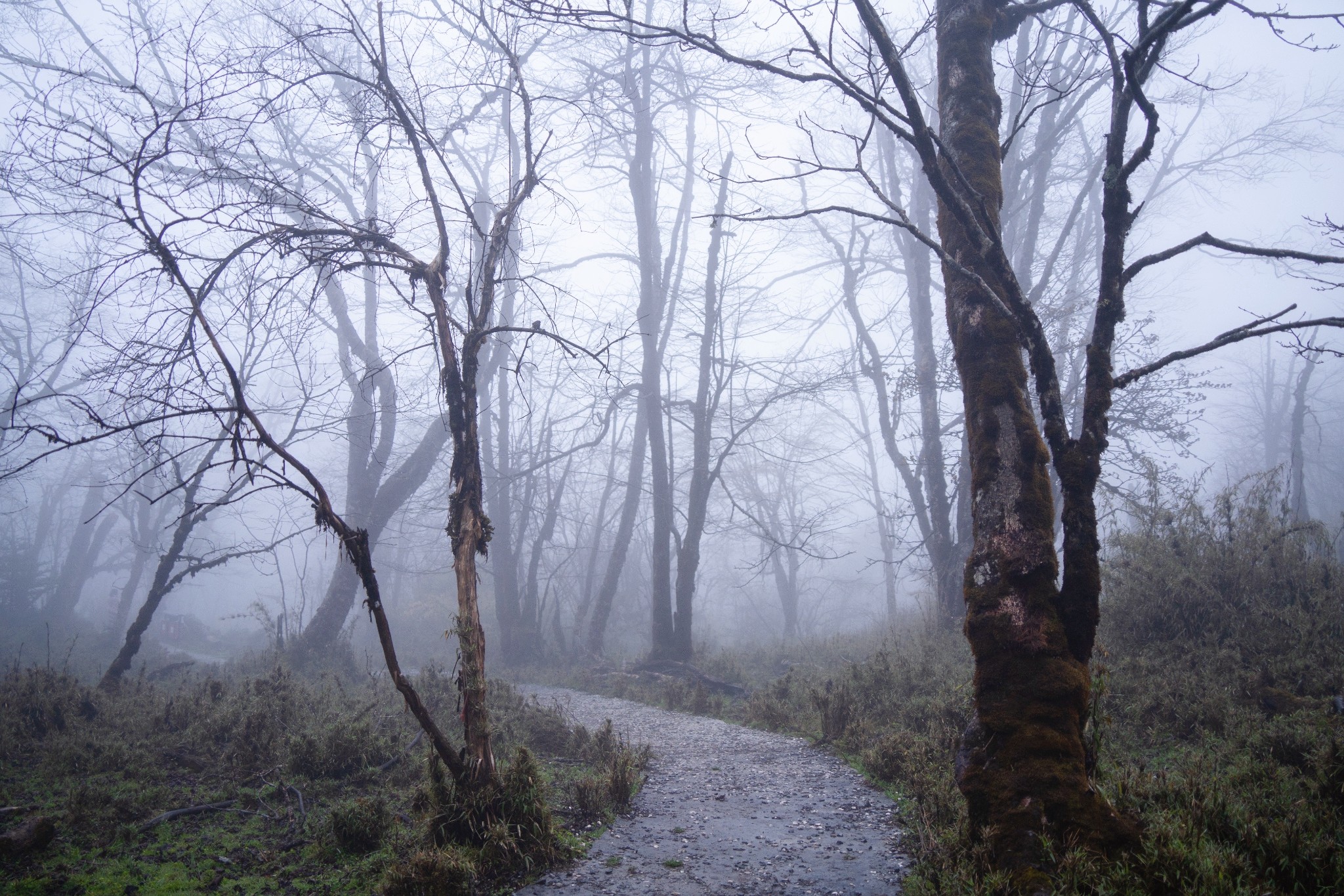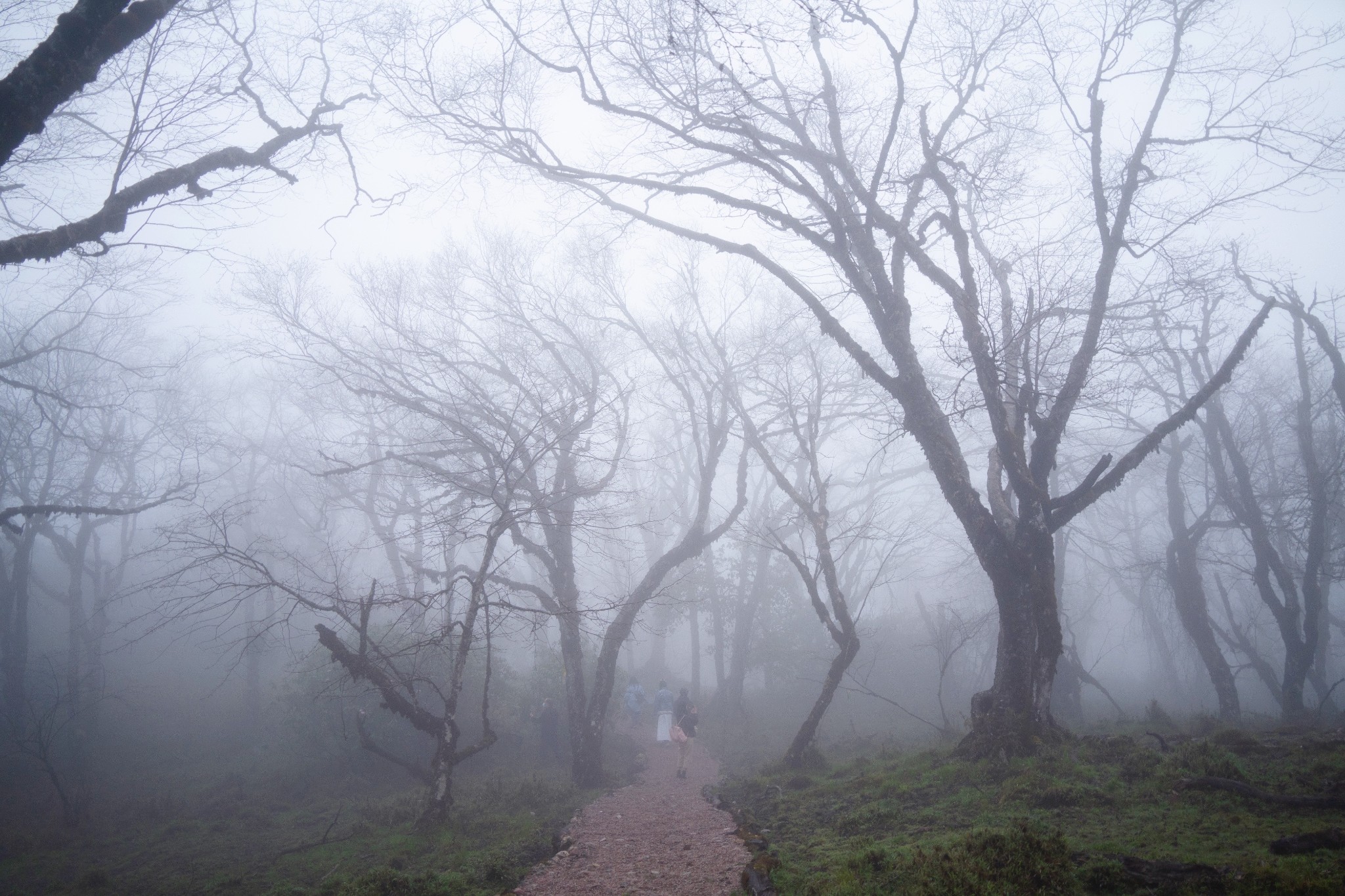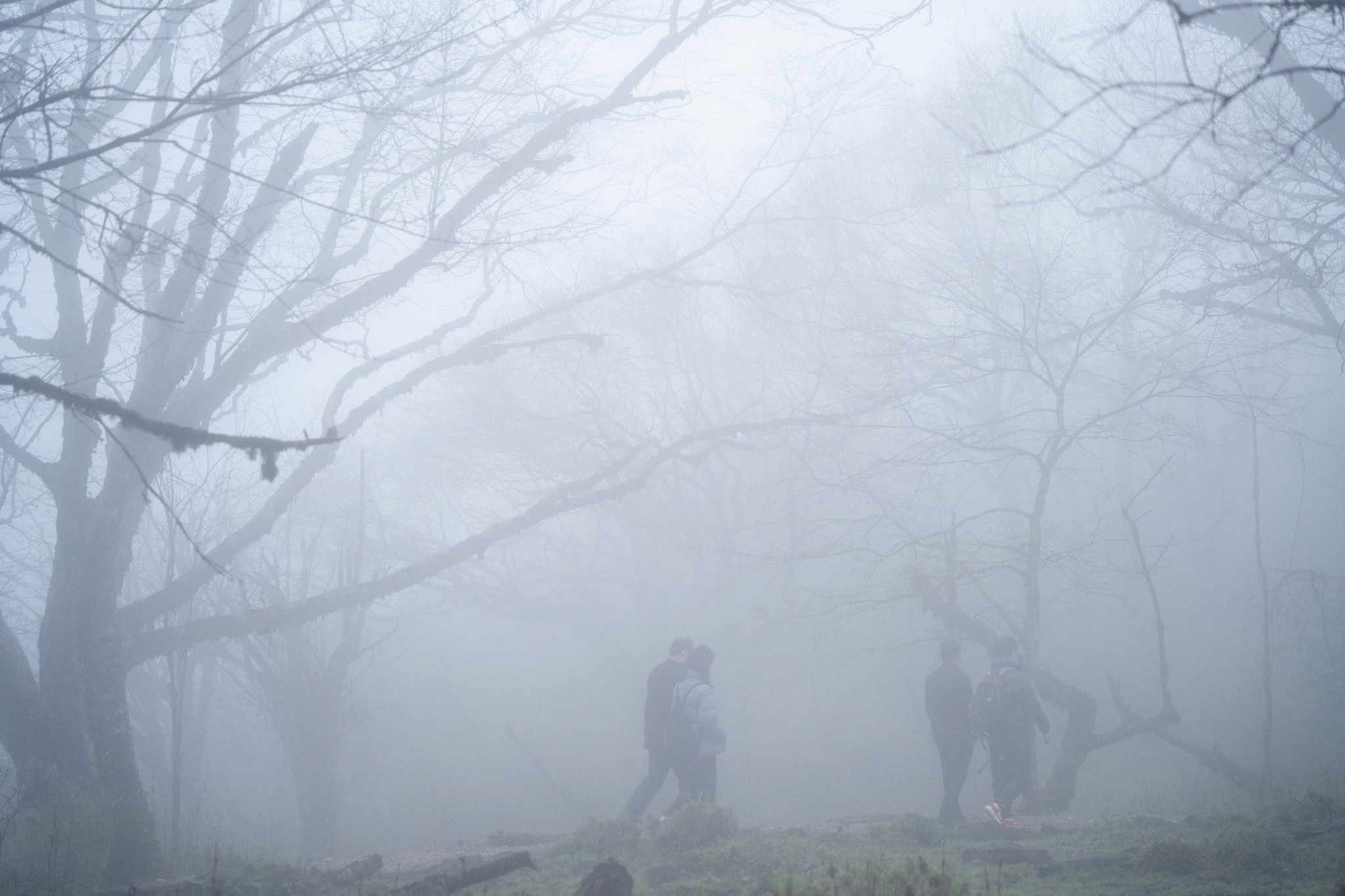 森林里的雾时大时小,游客感觉像是走在了电影场景中。