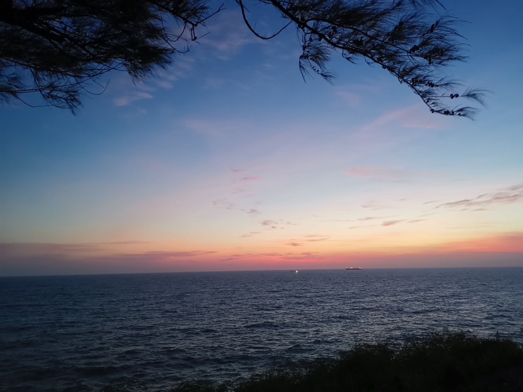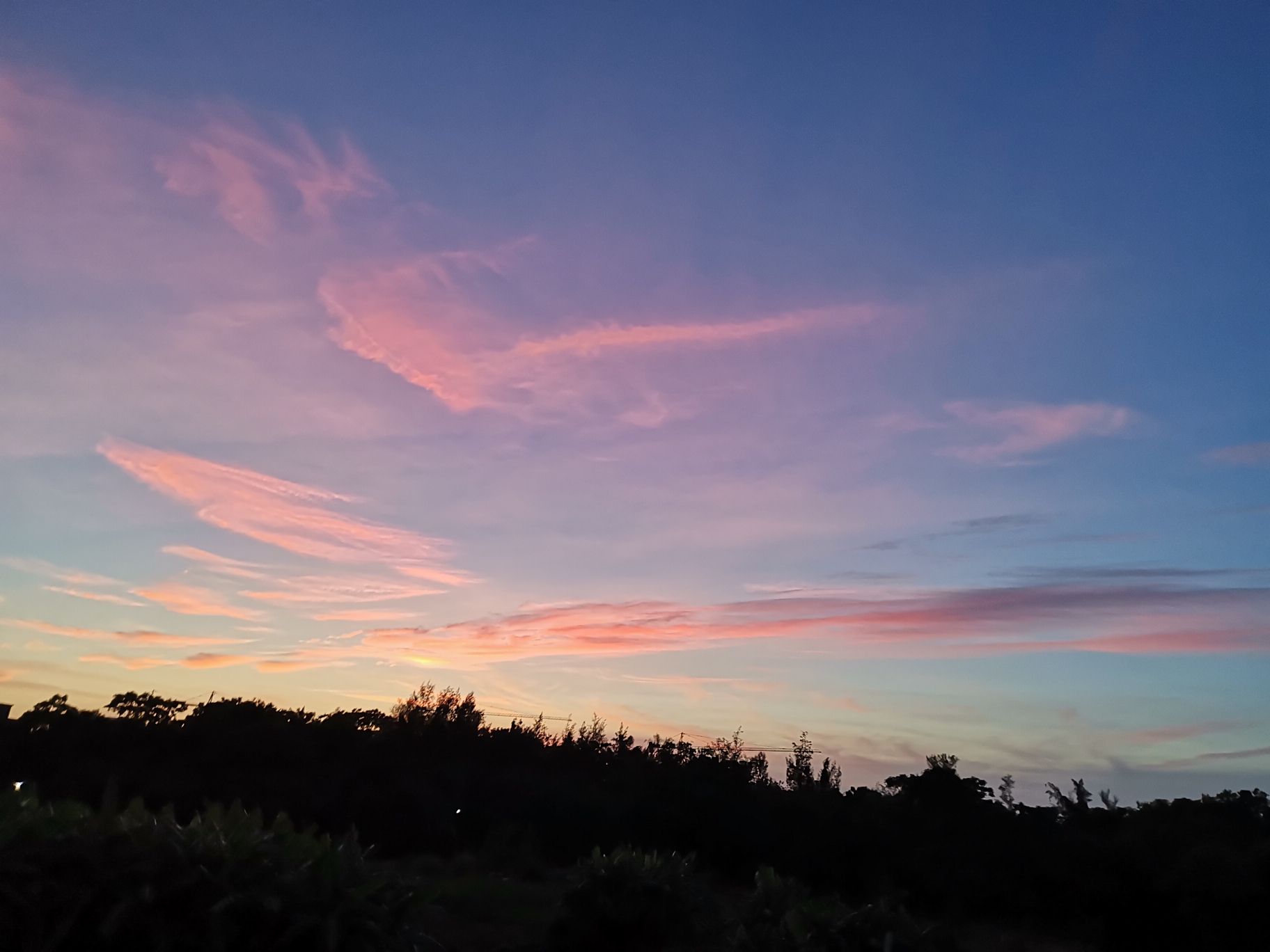 吃过晚饭出发暮崖,结果走错路就出现了以下的照片,粉色的云。虽然看不到落日从海面慢慢落下,但是在去看落日的路上一路上都是好心情了。