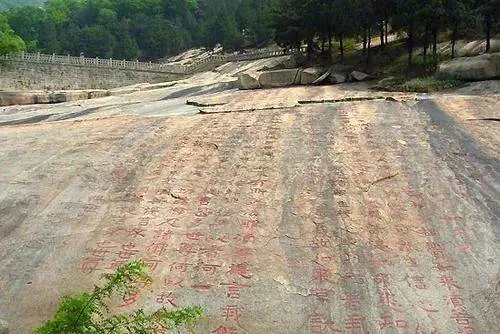 泰山石刻是中国文化史中的一枝奇葩,历代帝王到泰山祭天告地,儒家释道传教授经,文化名士登攀览胜,留下了琳琅满目的碑碣、摩崖、楹联石刻,而泰山摩崖石刻是名山之最。泰山石刻自秦汉以来至建国后,上下两千余载,各代皆有珍碣石刻。泰山石刻现存1800余处,其中碑碣800余块,摩崖石刻1000余处,它不仅是中国书法艺术品的一座宝库,而且是中华民族的文化珍品。