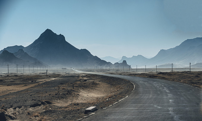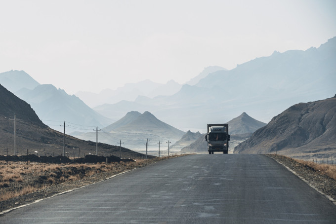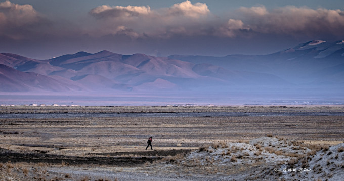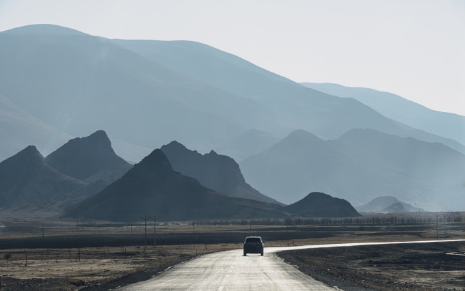 继续前进,6点之后的光线变得婉约恬静,珠峰保护区重重叠叠的山峰若隐若现,像极了月光下晃动的海浪,温和而柔软,仿佛进入一片异域之地,与白天明媚刚直的风光呈现着完全是不一样的面貌。如果不赶时间,我倒是很喜欢这样的风景,端起长焦相机,透过座椅与司机的空隙,对着前方一顿咔咔乱扫,在颠簸之中尽量保持平衡,国道上的车辆很少,偶尔一两辆车驶入画面,成了整张照片的点睛一笔。
