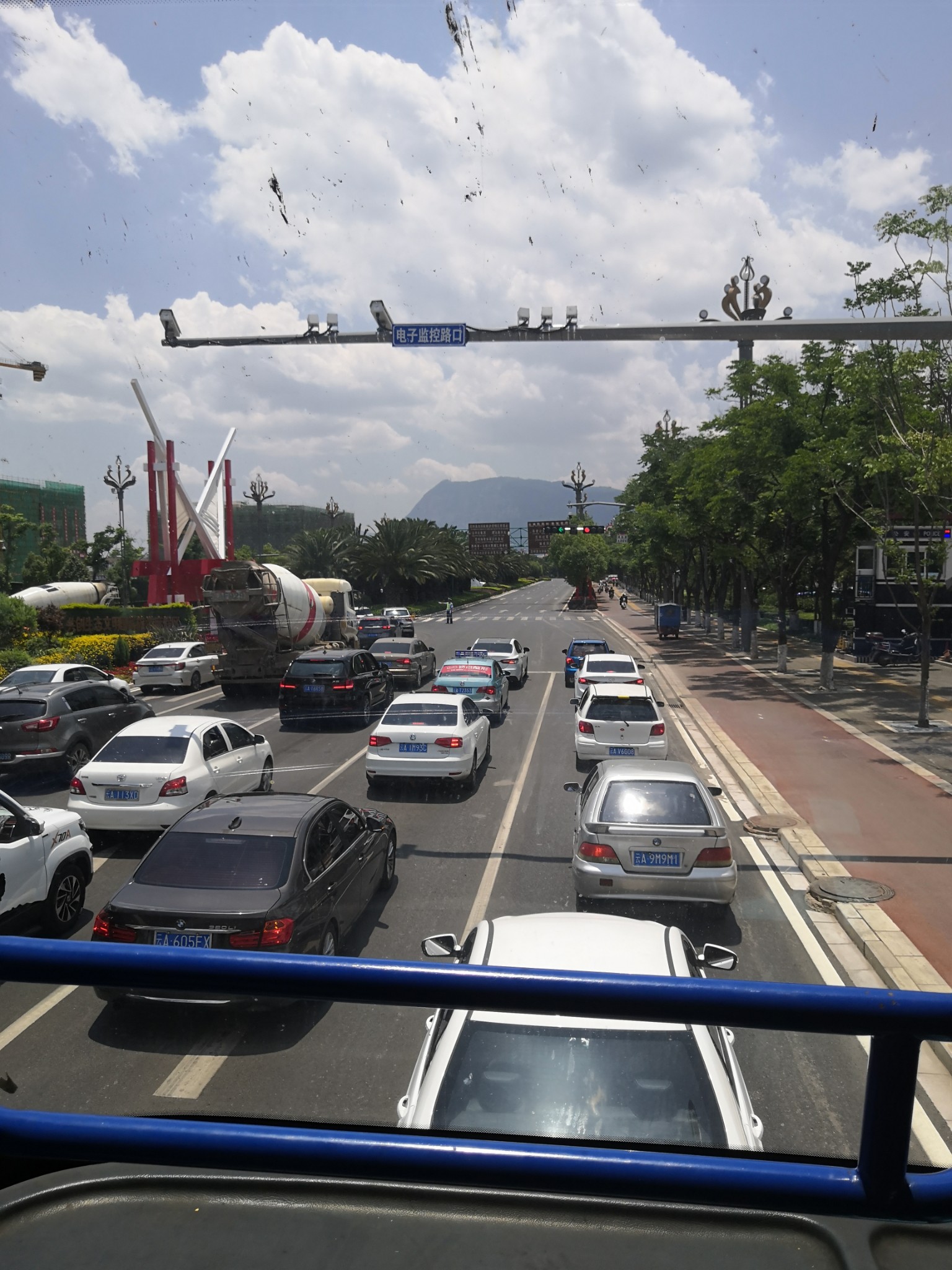 顺便体验了下双层大巴,在二层巴士上观赏昆明的景色,这边环境挺好的。