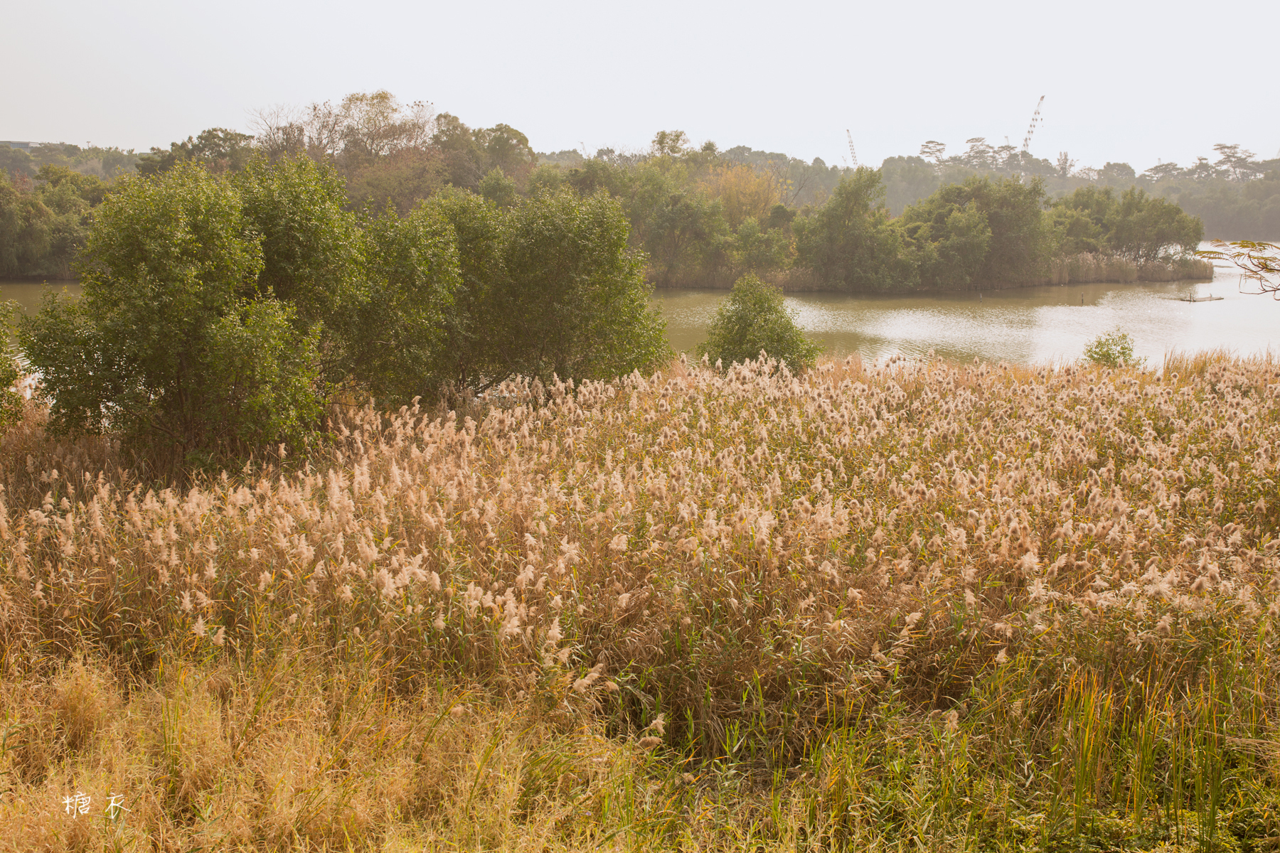 秋日公园里的芦苇也美得像一幅油画。