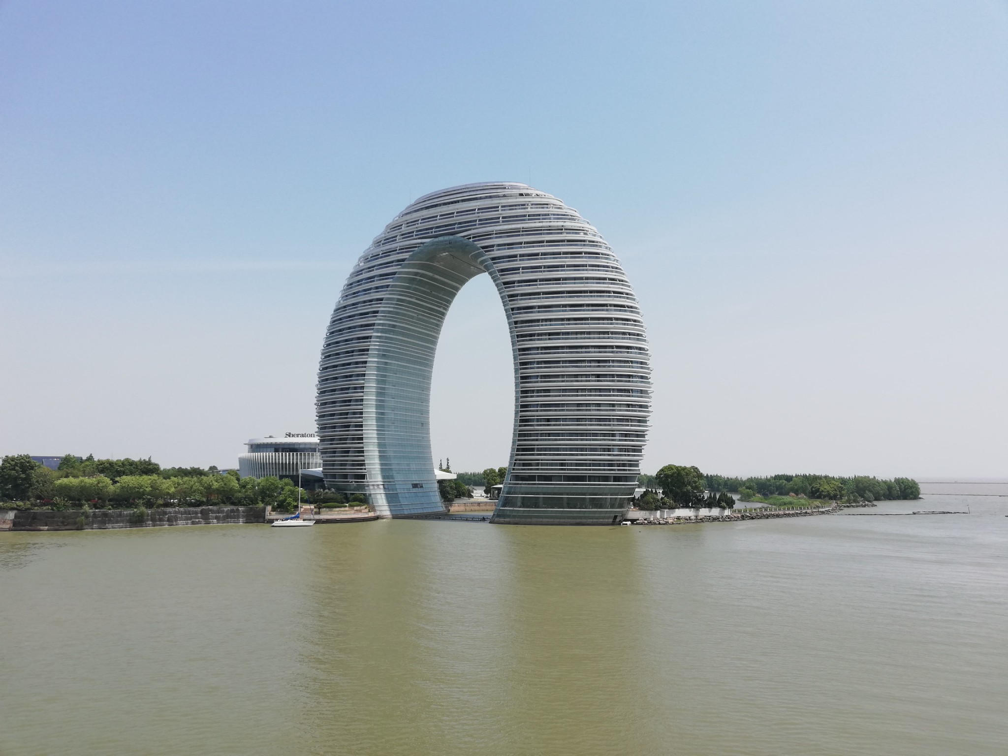 车停在月亮广场的地下停车库,来这边是为了看湖州的地标:喜来登温泉度假酒店,网上戏称为“马桶盖”。父母是第二次来了,他们那时不知道这栋楼是酒店,无意中开进了酒店范围,后来察觉到是酒店,想着可以住住看,结果在前台一问价格,直接石化,赶紧驶离了。