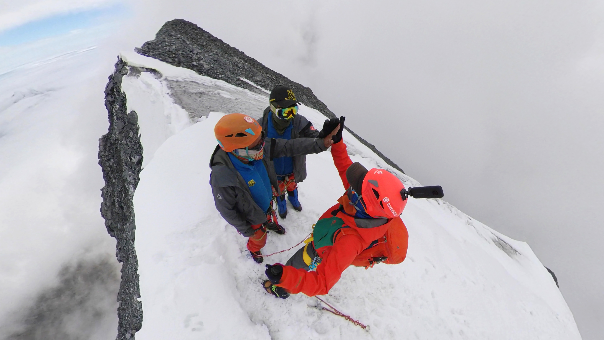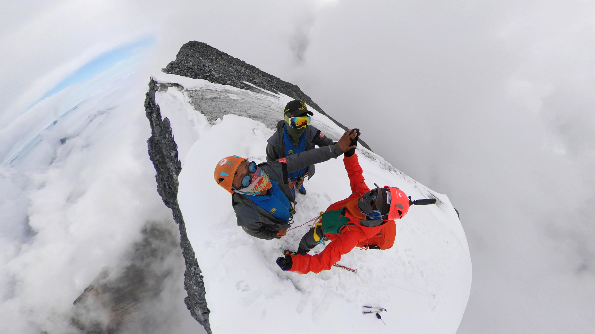 因为头一天跟着协作上去修路,修着修着不小心登顶了,第二天再和队员正式来攀登。所以我在12小时内登顶了2次……