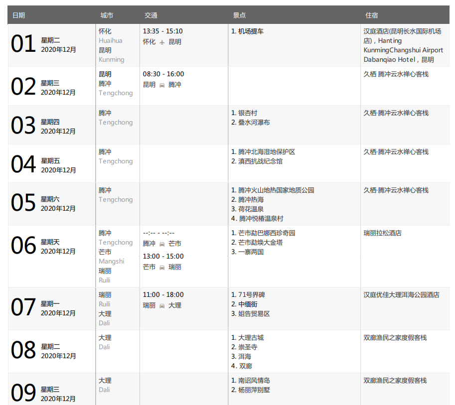 Day1抵达昆明,Day2-5昆明~腾冲,Day6腾冲~芒市~瑞丽, Day7瑞丽~大理,(待续)