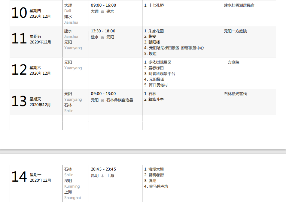 我们在古镇连住了4晚,每天上午安装计划,从古镇开车去景区,傍晚开车返回古镇。