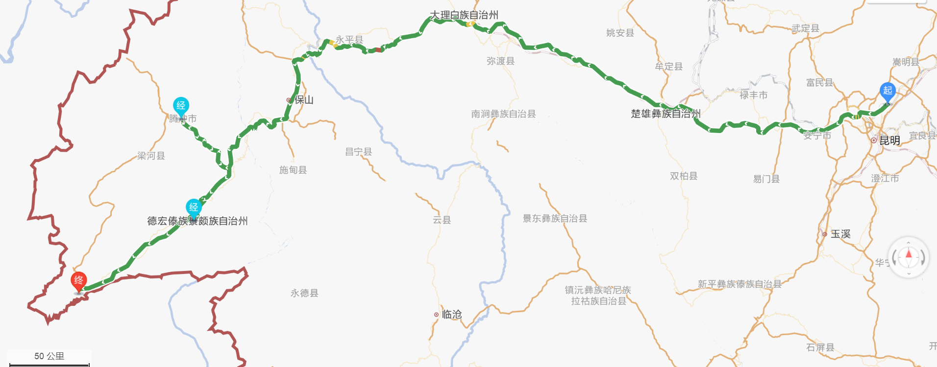 由于航班原因,到达昆明已经是傍晚,当天晚上在昆明长水机场附近住宿,并办妥租车手续。第2天一早上路。从昆明到腾冲600公里,驾驶含午餐一共8小时。路况不错,天气不错,心情当然不错啦。