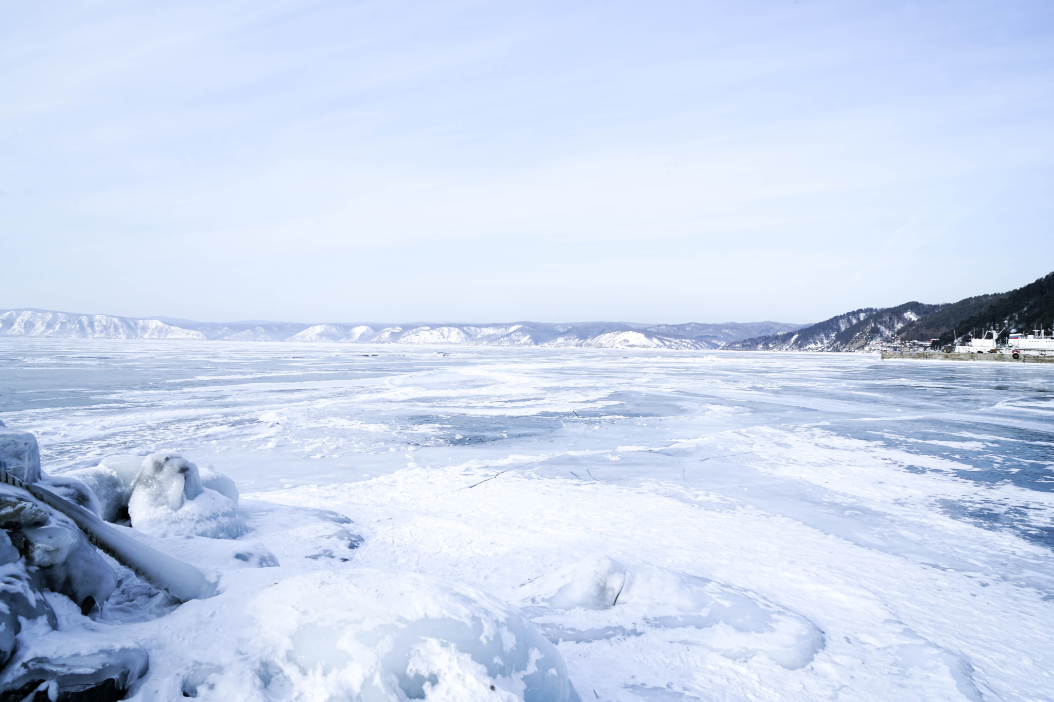 viktoria说,近几年贝加尔结冰时间一年比一年晚,全球气温上升直接导致蓝冰都可能结不起。按往年,利斯特维扬卡的贝加尔湖冰面都能看见蓝冰,更不用说奥利洪岛,而现在,奥利洪岛是否能看见蓝冰,都成了运气。