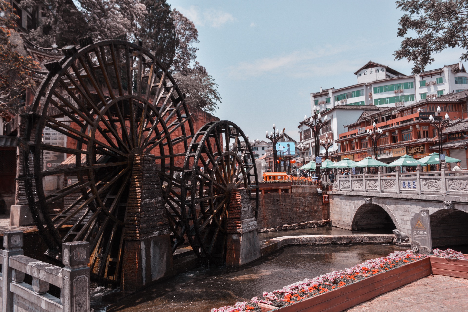 见到大水车的第一眼,我知道自己的旅程开始了,随时来到这里都有很多人拍照,毕竟它是古城的标志,也是古镇北门的入口。
