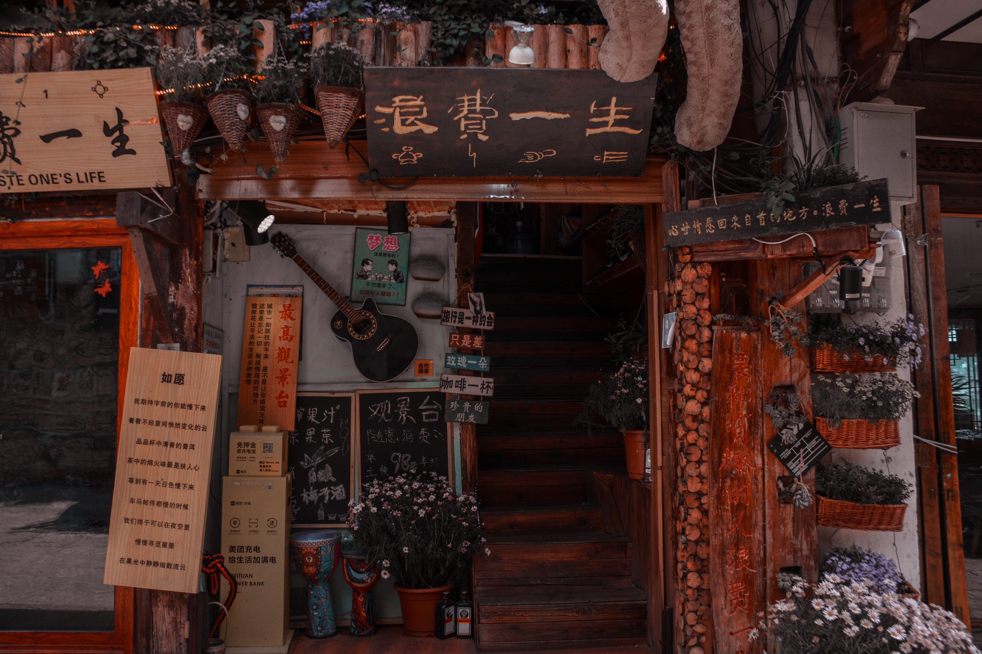 丽江到处都是这种文艺范儿十足的酒吧,有空进去坐坐,听歌和陌生的客人聊聊天,会发现很多有故事的人,大家其实都活的很不容易,各有烦恼。