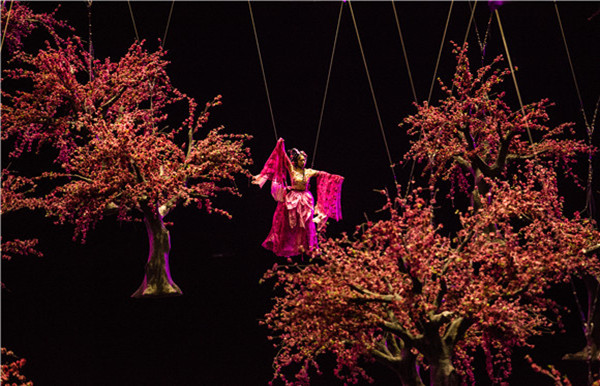 横跨表演区域,并且置于正中的,是超大型的威亚装置,演员和舞台场景的调度转换,都要依靠这威亚。据了解,威亚跨度达到了300米,能够实现全自动操控