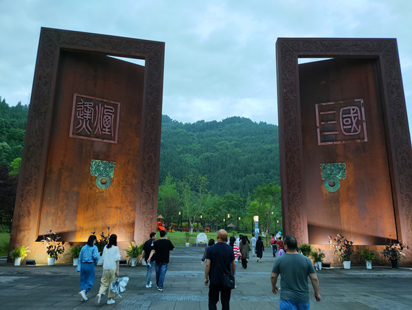 进入《烽烟三国》景区,首先看见的就是两扇大门,分别写着“烽烟”和“三国”两个大字。和其他的景区大门不同,这两扇门单独而立,分别向内打开,游人从两扇门中间通过,给人一种穿越进入历史之中的感觉