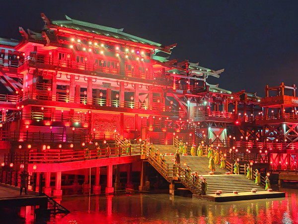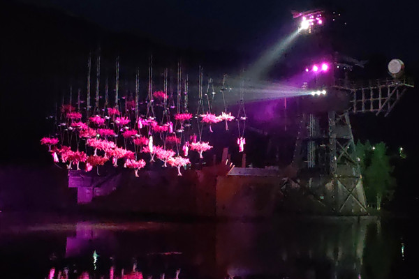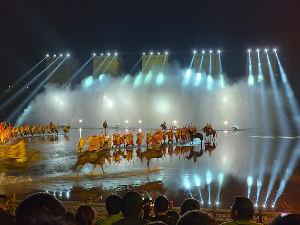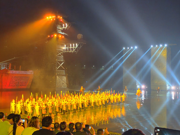 重庆忠县《烽烟三国》是长江三峡首台山水实景演艺项目,观众席180度移动旋转,演出通过大场景水上舞台和惊艳的水火特技,呈现出的史诗画卷气势恢宏,艺术效果美轮美奂。不仅让观众感受到整个古建筑群的磅礴气势,还会体验到全国独有的观演方式