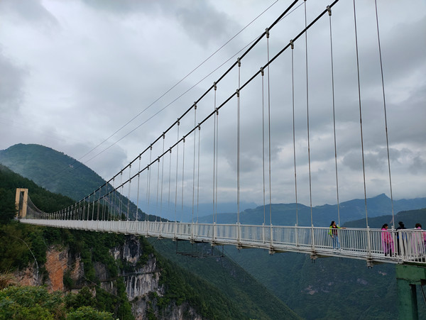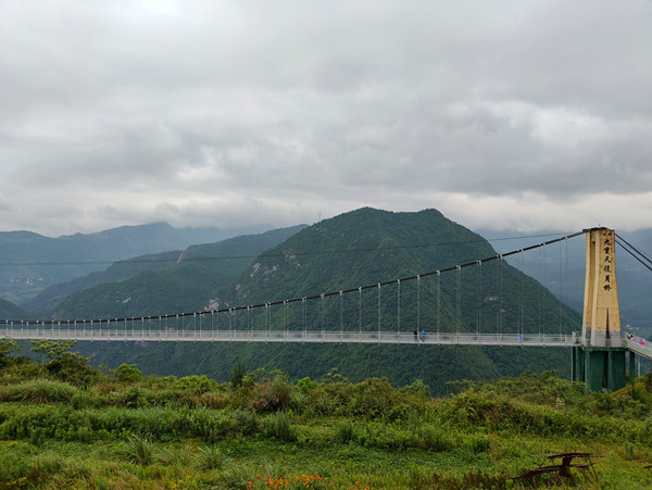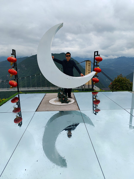 揽月桥位于连天栈道景区内,距离谷底1000米,是目前重庆最高,最长的5D玻璃吊桥