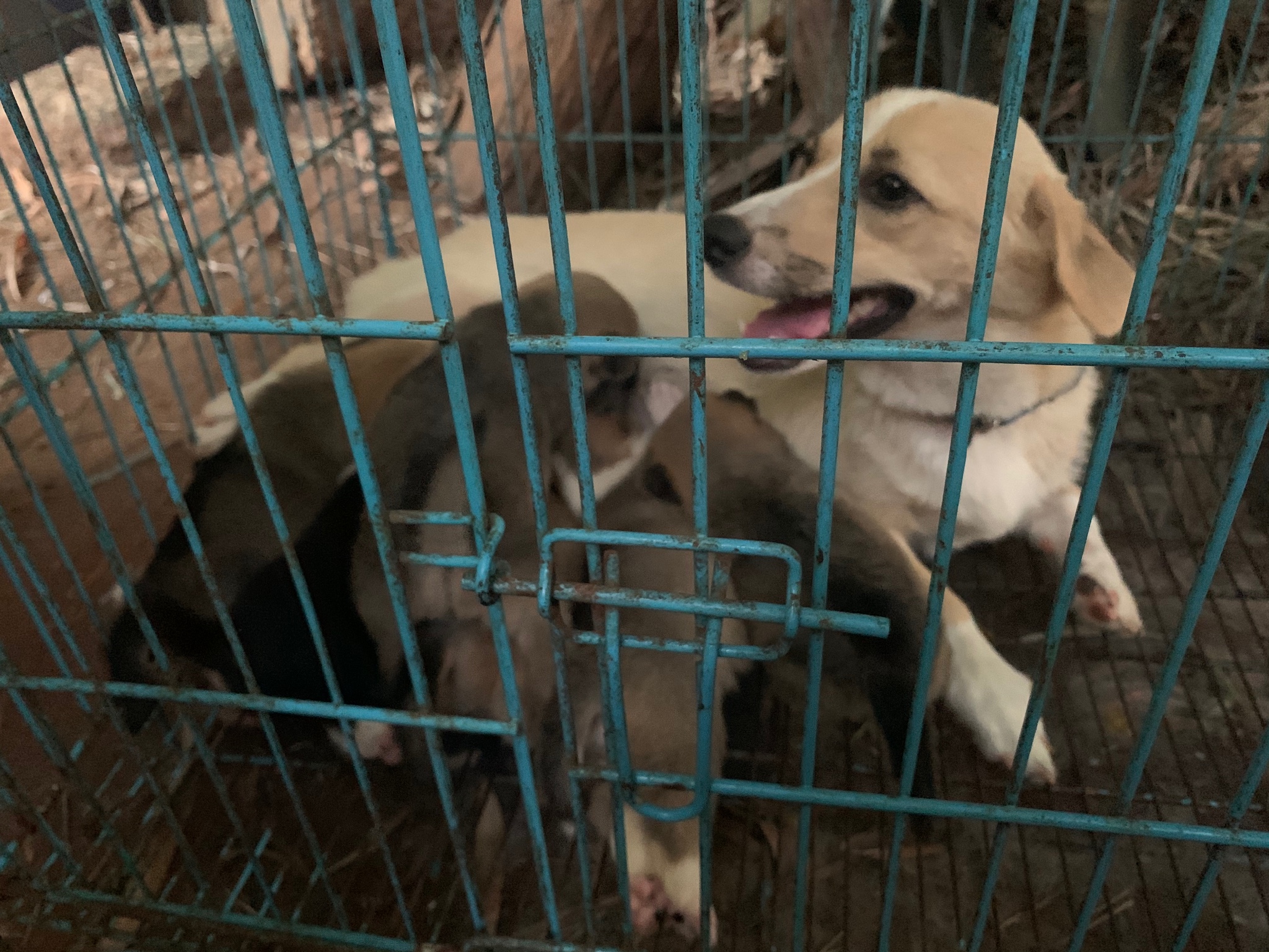 岛上最多的居然是川菜馆,因为昨晚是海鲜,今天尝试了一家川菜,走过店家的后院去卫生间,经历了鸡鸣狗吠后终于到达,碰巧有一窝可爱的小狗。