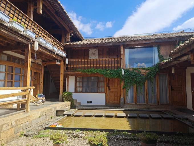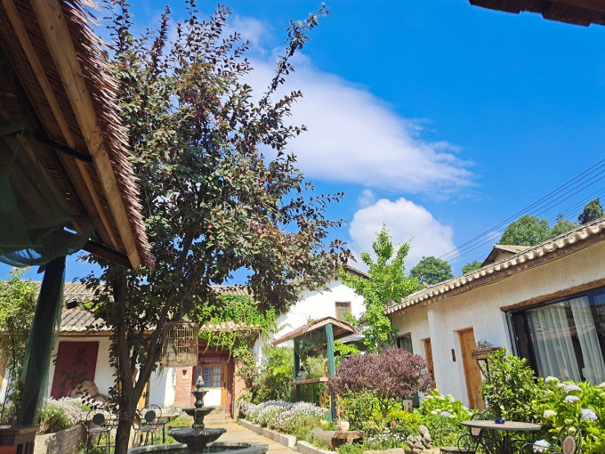 前一天到达太晚,没来的及发现客栈竟然有这么多惊喜!房间是阁楼设计,木质结构,有书房,花园,石阶,小池,秋千,古筝演奏台,还有大片大片的园景花,绣球居多。