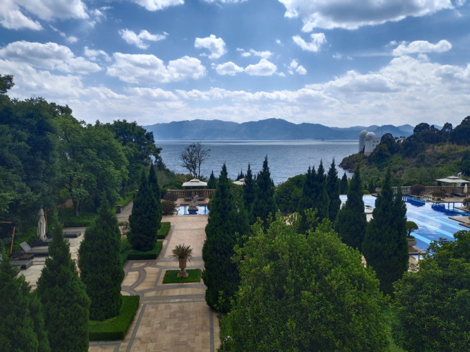 入住希尔顿酒店,酒店里面独享抚仙湖一角,迷你沙滩,搭配酒店户外观景泳池和草地,美到犯规。从酒店里侧看,希尔顿像是一座庄园城堡风,宽大的石头台阶,高大的树木园林被规划的方方正正。