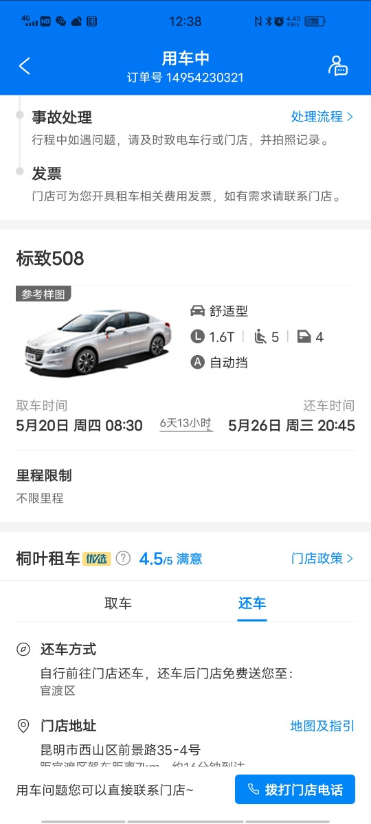 长途行驶,租车选择时选择1.6T以上,马力才够。行李箱较大数量多时,选择舒适型汽车,后备箱大。昆明租车性价比超级高,车新价格低。经过需求比对,最后选择了下面这辆标志508~